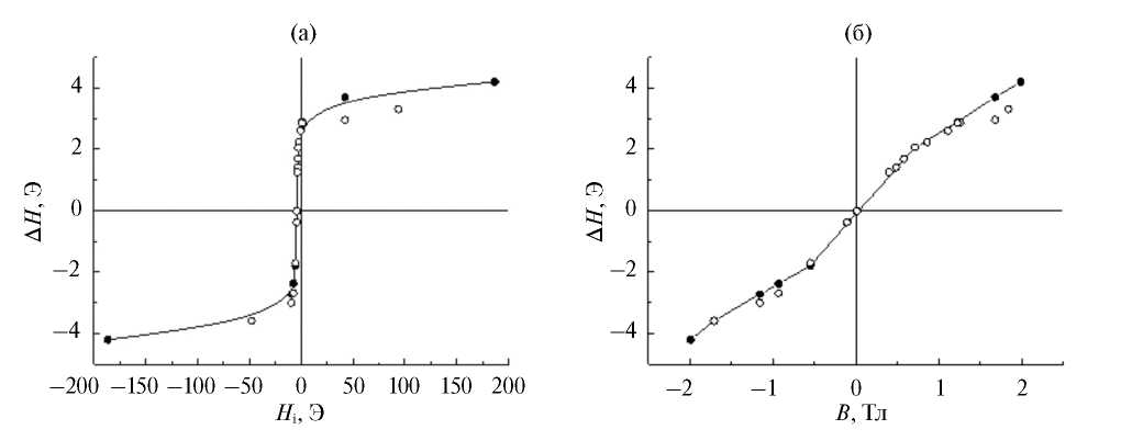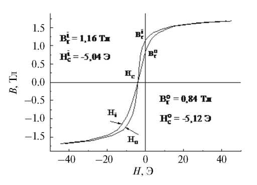 Экспериментальные результаты представлены на рис. 1–3 и в табл. 1 и 2. На рис. 1, рис. 2 показаны петли гистерезиса в функции внешнего и внутреннего полей.