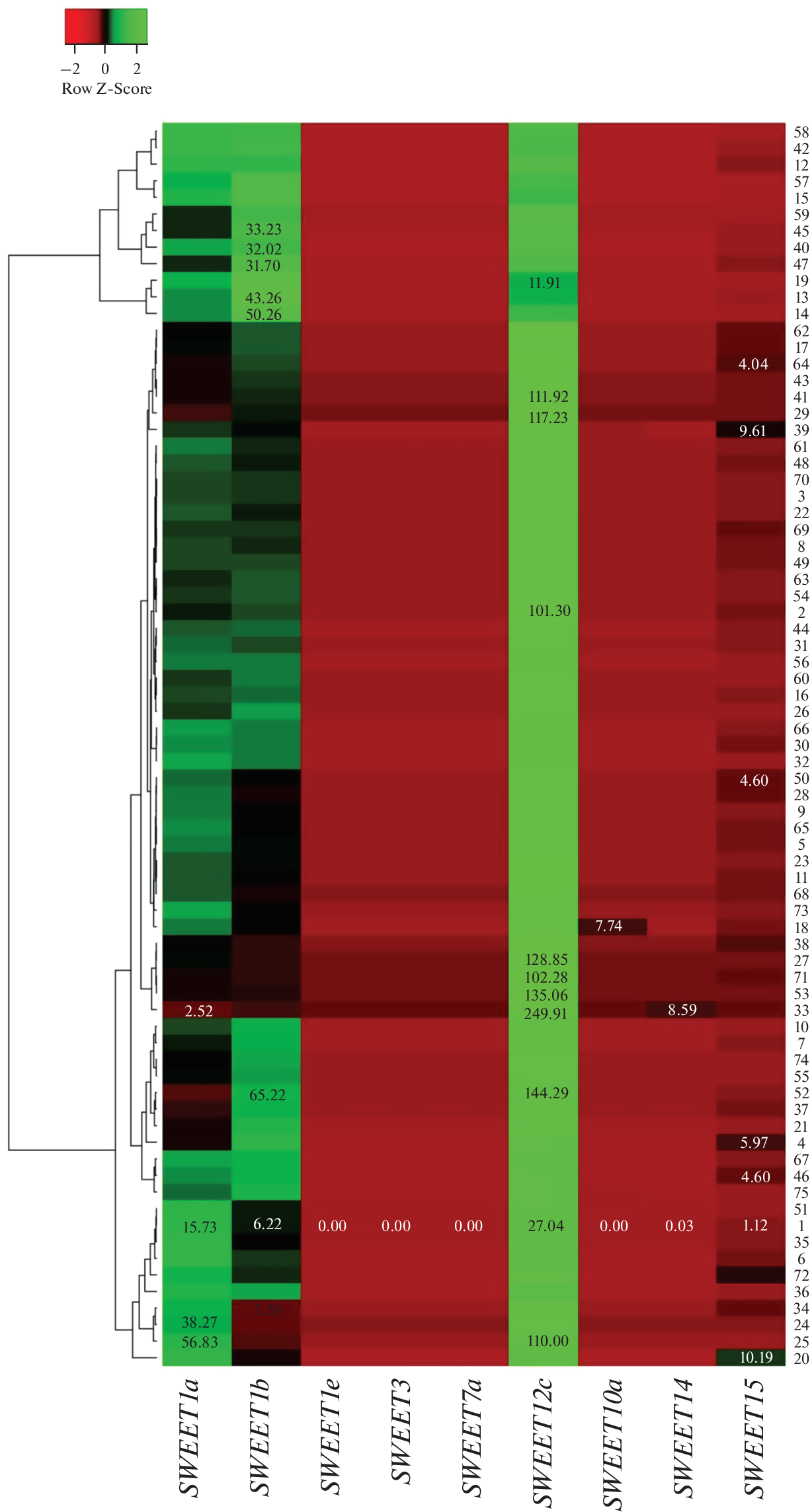 - Feng C.Y., Han J.X., Han X.X., Jiang J. Genome-wide identification, phylogeny, and expression analysis of the SWEET gene family in tomato // Gene. 2015. V. 573. P. 261. https://doi.org/10.1016/j.gene.2015.07.055