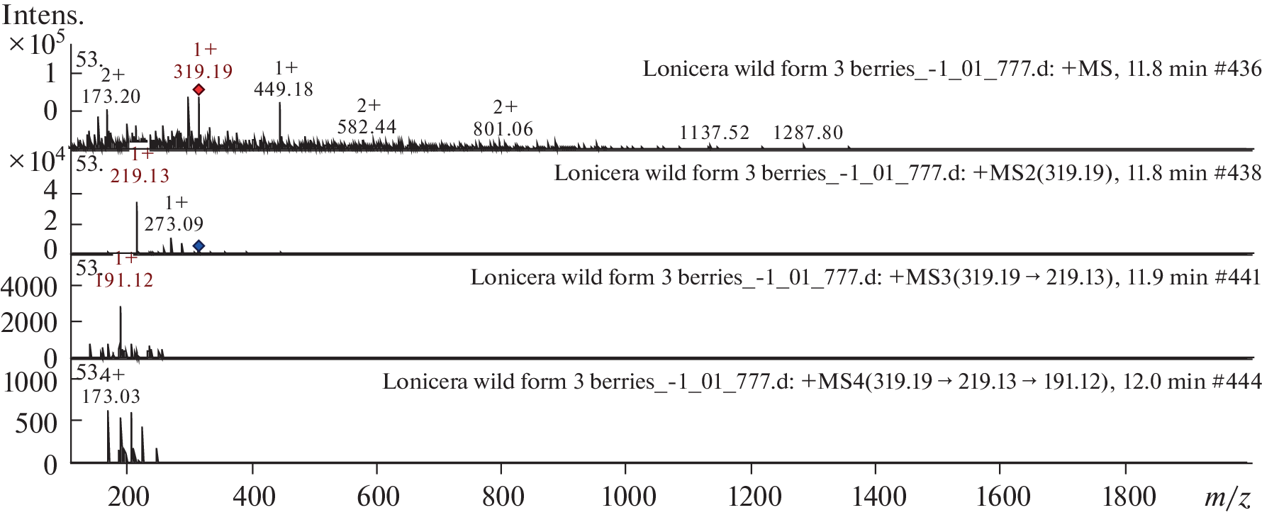 - Jaiswal R., Muller H., Muller A., Karar M.G.E., Kuhnert N. Identification and characterization of chlorogenic acids, chlorogenic acid glycosides and flavonoids from Lonicera henryi L. (Caprifoliaceae) leaves by LC-MSn. // Phytochem. 2014. V. 108. P. 252. https://doi.org/10.1016/j.phytochem.2014.08.023