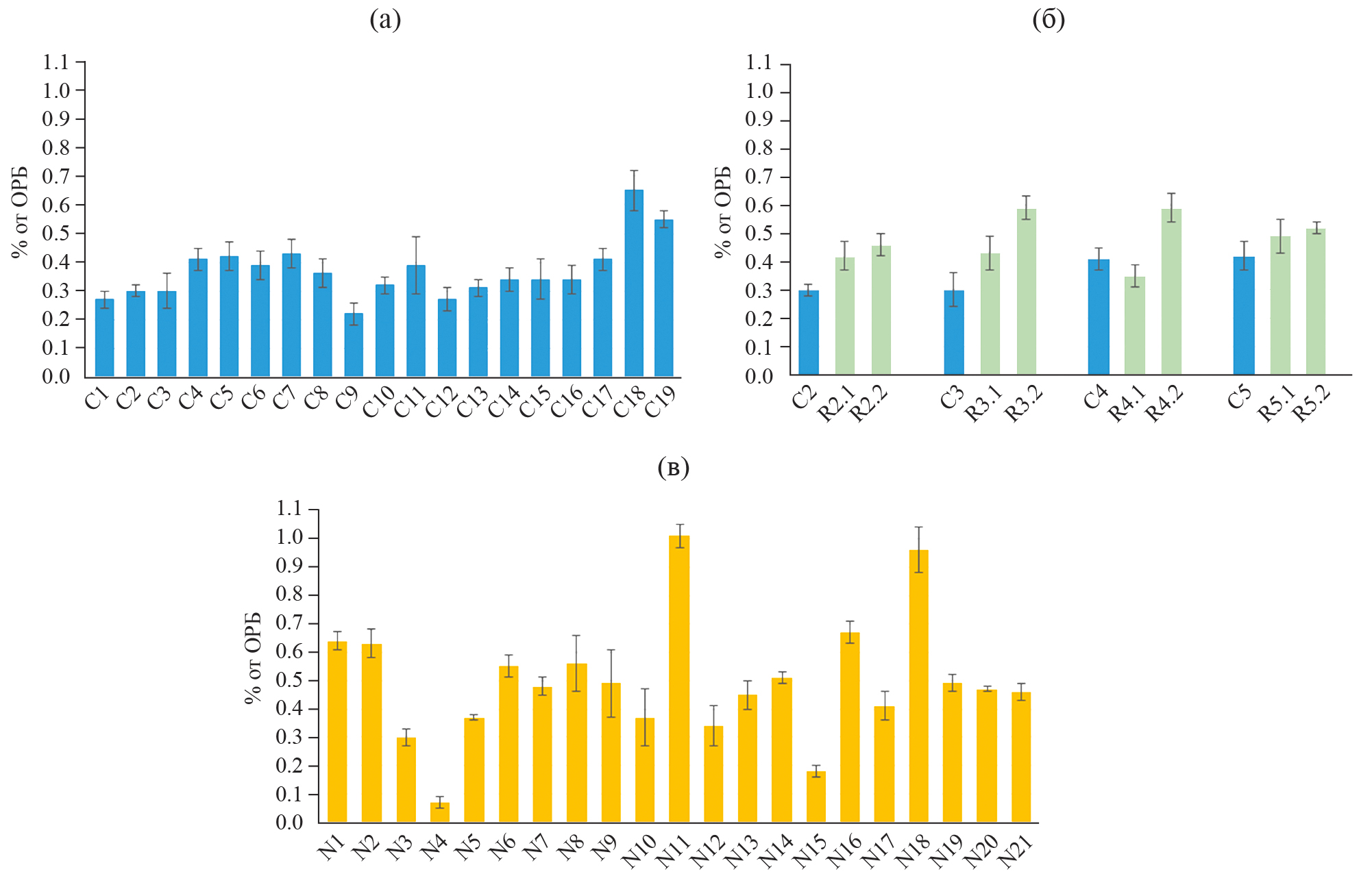 ОРБ выделяли из листьев зрелых растений (см. выше). Определение ОРБ проводили с использованием реактива Бредфорд на приборе Clariostar Plus (“BMG Labtech”, Германия) при длине волны 595 нм. Калибровку строили по БСА в рабочей концентрации 1 мг/мл.