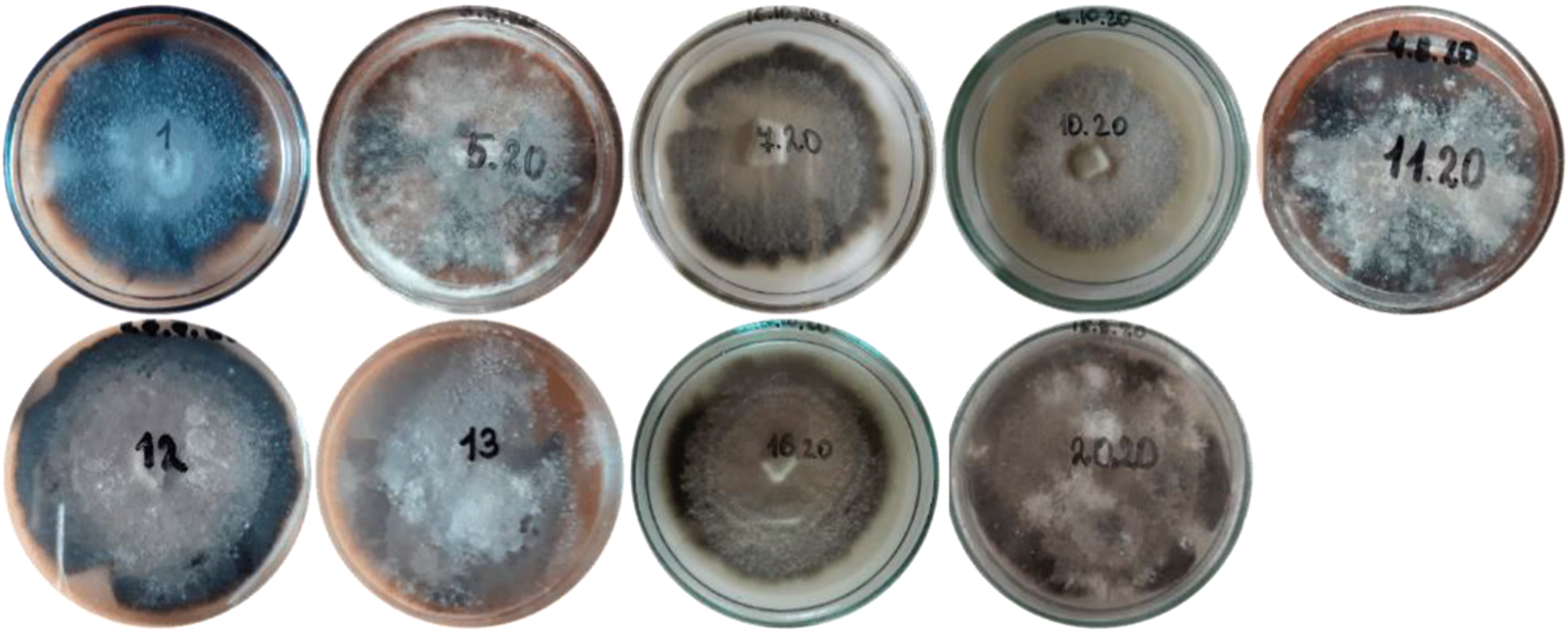 На основе молекулярно-генетических подходов проведено изучение биоразнообразия фитопатогенного гриба Pyricularia oryzae Cav. на юге России и проведена классификация морфолого-культуральных и генетических признаков патогена. За 2020–2022 гг. проведен мониторинг и выделено 24 штамма патогена из пораженного гербарного материала, собранного с полей пяти экологических рисосеющих зон Краснодарского края (Красноармейского, Калининского, Абинского, Славянского районов, Краснодар). С использованием мультиплексной системы ПЦР на основе фрагментного анализа среди изученных штаммов Pyricularia oryzae Cav. за весь период выполнения проекта выявлено пять генотипов, каждый из которых характеризуется уникальным генетическим профилем. Составлены их “ДНК-паспорта”. Изученные изоляты возбудителя пирикуляриоза охарактеризованы по морфолого-культуральным признакам. Выделено шесть морфотипов патогена.