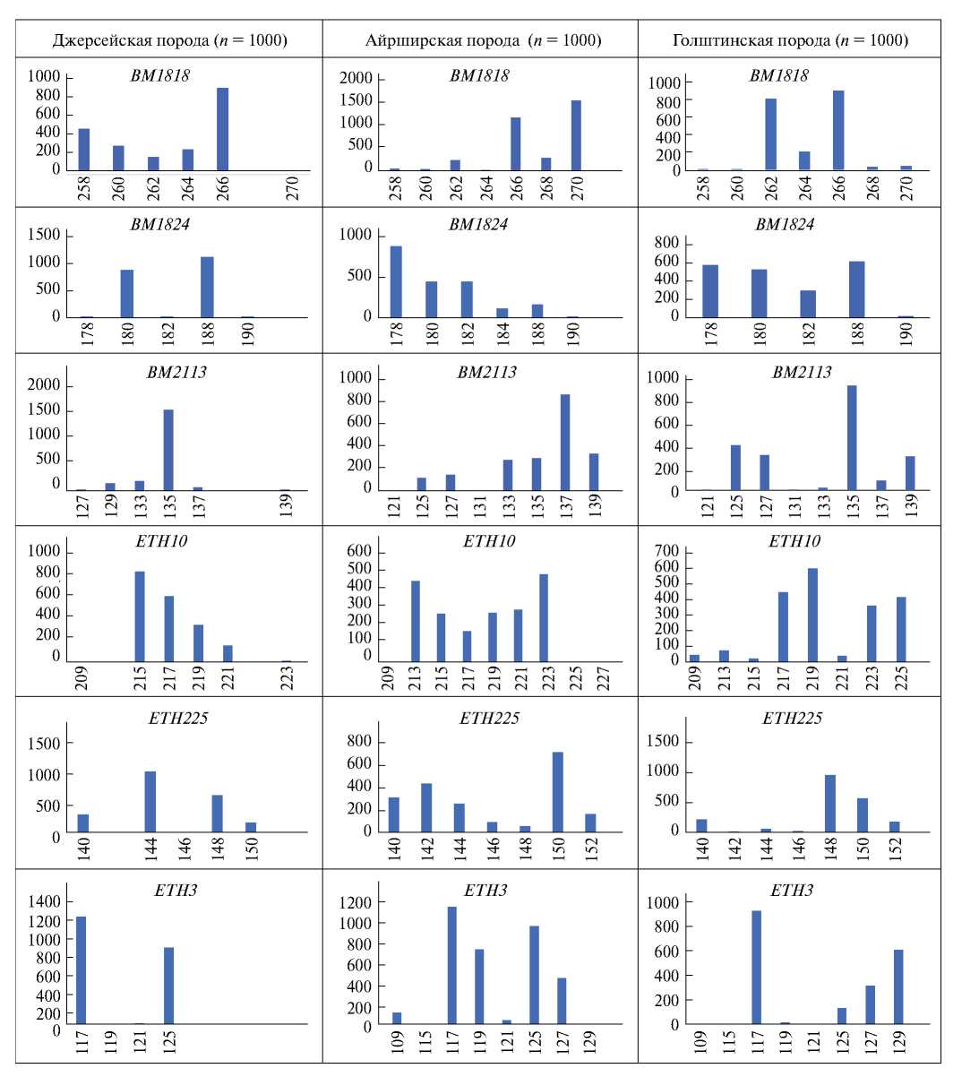 Типичными для голштинского скота и малораспространенными (либо не встречающимися) у представителей айрширской и джерсейской пород являются аллели 129 локуса ETH3, 176, 184, 186 локуса TGLA53.