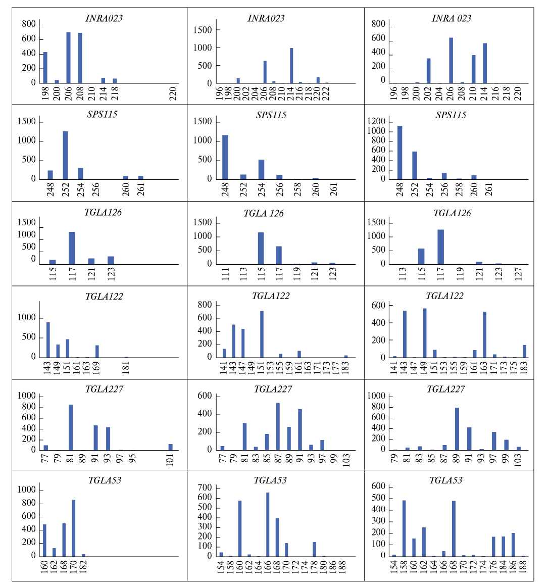 INRA023 | 0.73 | 0.27 | 0.68 | 0.32 | 0.66 | 0.34 |