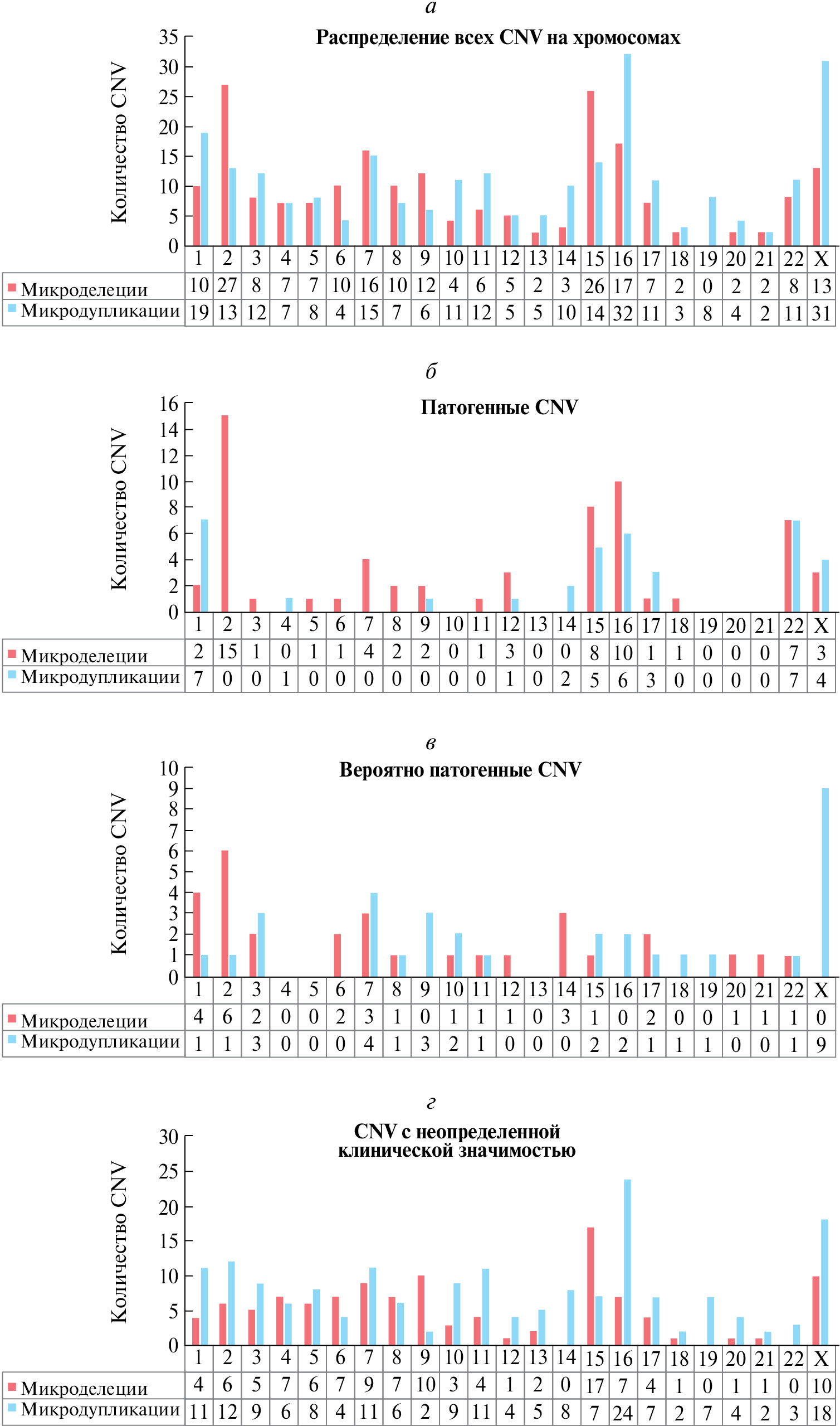 Нарушения психомоторного развития (НПР) представляют собой большую группу этиологически разнородных состояний, ассоциированных с поражениями нервной системы. НПР характеризуются нарушением когнитивных, речевых, моторных, а также социальных способностей и включают такие патологии как интеллектуальные расстройства, задержку речи, расстройства аутистического спектра (РАС), синдром дефицита внимания и гиперактивности (СДВГ), нарушения обучаемости и моторного развития [1]. Среди причин НПР выделяют как средовые, так и генетические факторы. Генетические факторы включают моногенные формы наследственных болезней (Х-сцепленные, аутосомно-рецессивные, аутосомно-доминантные), экспансию тринуклеотидных повторов, числовые аномалии хромосом (моносомии и трисомии), а также структурные хромосомные варианты, которые представлены вариациями числа копий участков ДНК (Copy Number Variation, CNV) [2]. CNV представляют собой фрагмент ДНК размером более одной тысячи пар нуклеотидов, по числу копий отличающийся от референсного генома [3]. С развитием молекулярно-генетических технологий стали выявлять структурные хромосомные варианты значительно более мелкого размера, и в настоящее время нижняя граница размера CNV составляет 50 пар нуклеотидов [4].