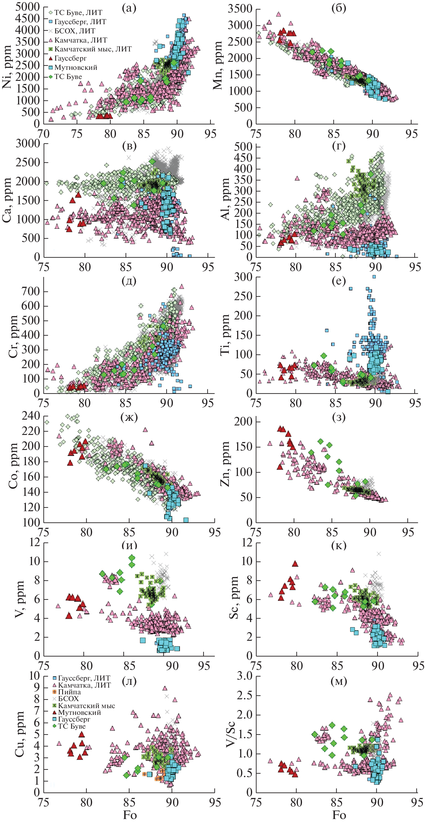- Locmelis M., Arevalo R.D., Puchtel I.S., Fiorentini M.L., Nisbet E.G. (2019) Transition metals in komatiitic olivine: Proxies for mantle composition, redox conditions, and sulfide mineralization potential. Amer. Miner. 104, 1143-1155.