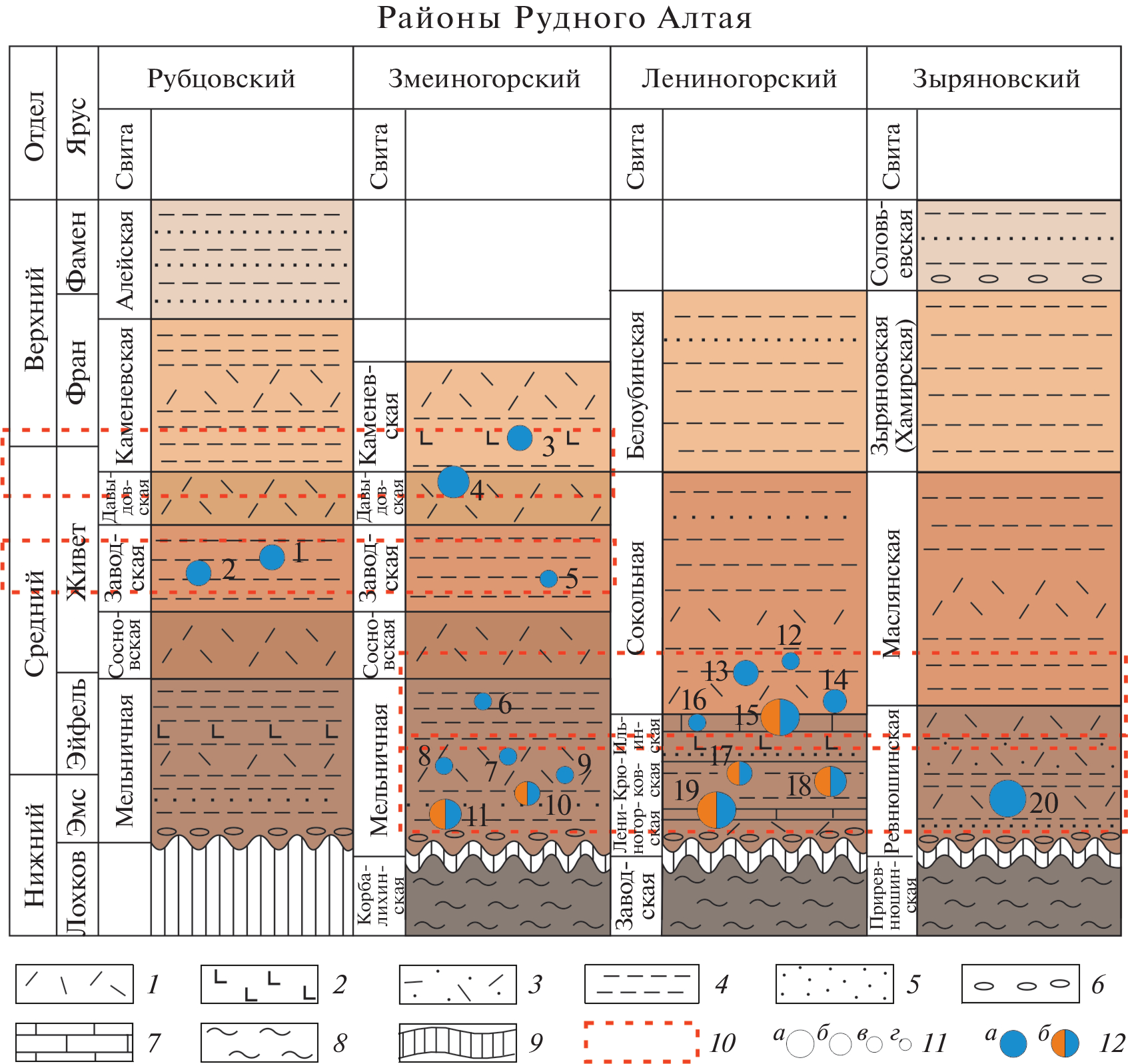 - Козлов М.С., Дубатолов В.Н. (1994) Стратиграфия верхнесилурийских, девонских и нижнекаменноугольных отложений Юго-Западного Алтая. Геология и геофизика. 35(12), 18-36.