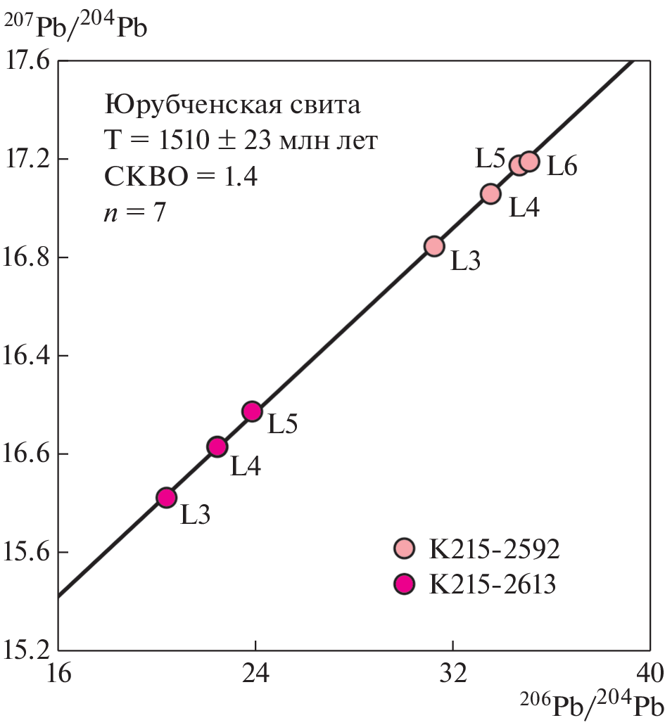 The potential of the stepwise dissolution analytical procedure to obtain chemostratigraphic and geochronological information is demonstrated by a case study of Riphean carbonate rocks of the Kamovskaya Group of the Baykit Uplift (Eastern Siberia). The procedures suggested for studying Rb–Sr and U–Pb systems in carbonate rocks included (1) selection of samples with the lowest 87Sr/86Sr ratio on the basis of preliminary Rb–Sr analysis of the collection using the routine procedure of bulk leaching in 0.1N CH3COOH; (2) detailed study of the Rb–Sr system in selected samples using two-step dissolution in 0.2N CH3COOH and derivation of L(Rb–Sr)1 and L(Rb–Sr)2 fractions; (3) analysis of Pb isotope composition of the selected samples to derive the preliminary value of their age; (4) detailed study of U–Pb system of carbonate rocks using the stepwise dissolution in 0.5N HBr, resulting in six dissolved fractions L(U–Pb)1–L(U–Pb)6 for each of the selected samples; and (5) a final calculation of the Pb–Pb age of the studied rocks, based on the results from the obtained fractions, with the exclusion from the calculation of the initial fractions of this dissolution containing epigenetically altered carbonate material. The values of the primary 87Sr/86Sr ratio in L(Rb–Sr)2 fractions of carbonate rocks of the Kamovskaya Group are as follows: limestone of the Madrinskaya Formation, 0.70490; dolomites of the Yurubchenskaya Formation, 0.70495–0.70503; and dolomites of the Kuyumbinskaya and Vingoldinskaya formations, 0.70580 and 0.70521, respectively. These values characterizing the least altered carbonate material correspond to 87Sr/86Sr ratios in the Early Archean and can be used for chemostratigraphic calculations. Taking into account the Rb–Sr data, the U–Pb age of the Yurubchenskaya Formation carbonate rocks dissolved in six steps was calculated, starting from L(U–Pb)3. The slope of the resulting isochron in the coordinates 206Pb/204Pb–207Pb/204Pb corresponds to 1501 ± 23 Ma, which supports the conclusion that the carbonate rocks of the lower part of the Kamovskaya Group of the Baykit Uplift were formed in the Early Riphean.