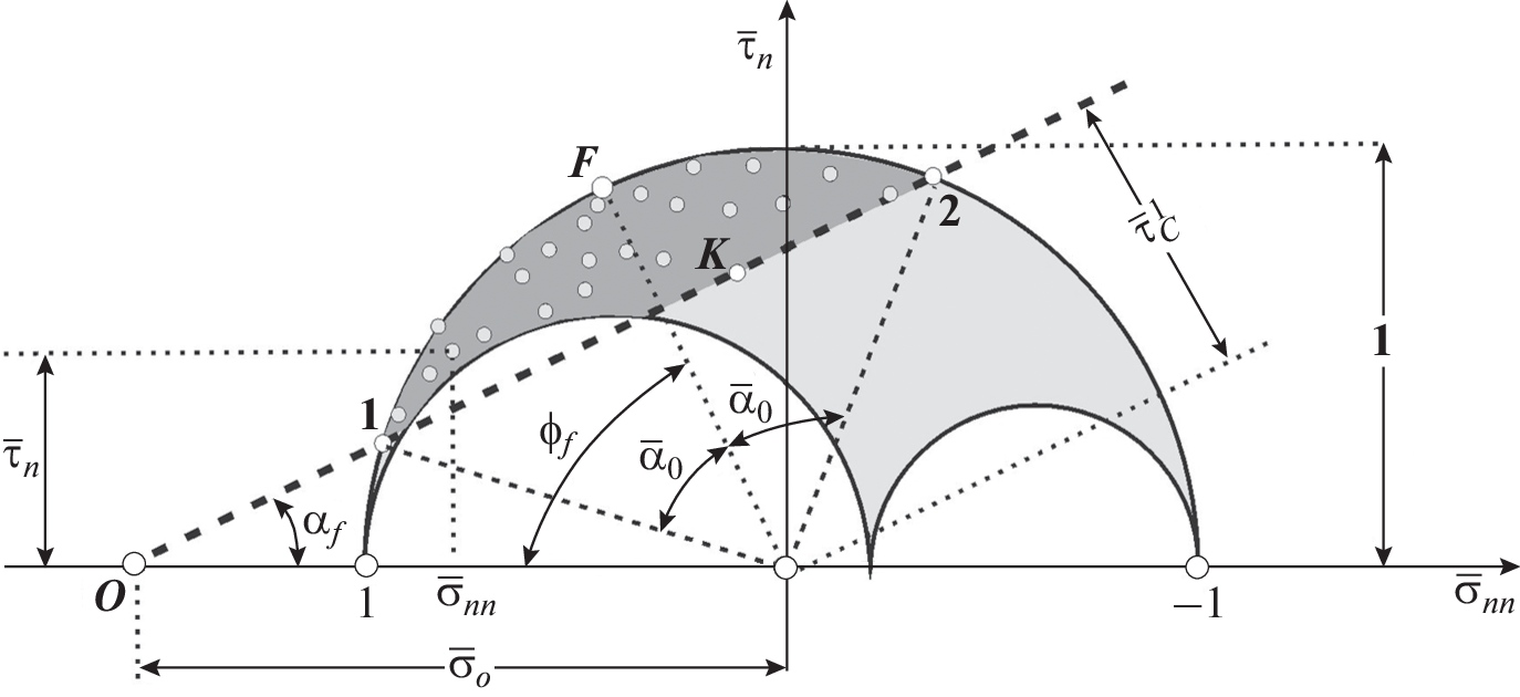A new technology of stress inversions is proposed on the basis of data of mute fracturing with measured amplitudes of dilative opening of fractures (tension shear), which are registered by mineralization (vein bodies). The involvement of a basic law of geomechanics of supercritical deformation, which determines the interrelation between amplitudes of shear deformations and deformations of transverse extension (dilatancy), allows us to link the amplitudes of opening of shear fractures with the level of Coulomb stresses. This approach can be used for a conjugated fracture system and fault zones with a system of similarly oriented fractures. Our algorithm and technology of stress calculation consist of consecutive analysis of a geometrical form and characteristic lineaments of density zone of fracture poles on the stereospheres and stress conditions of these fractures on Mohr’s diagram. The algorithm allows the calculation of the parameters of stress tensor both on the basis of graphical analysis on the stereonets and Mohr’s diagram and using a group of formulas. The algorithm is applied for the Nadvigovaya zone of the Badran deposit. The stress values are calculated for a fault area with measured fracturing, and a forecast for promising areas is given for a deeper fault part in areas with possible most intense dilatancy of fracture flow.