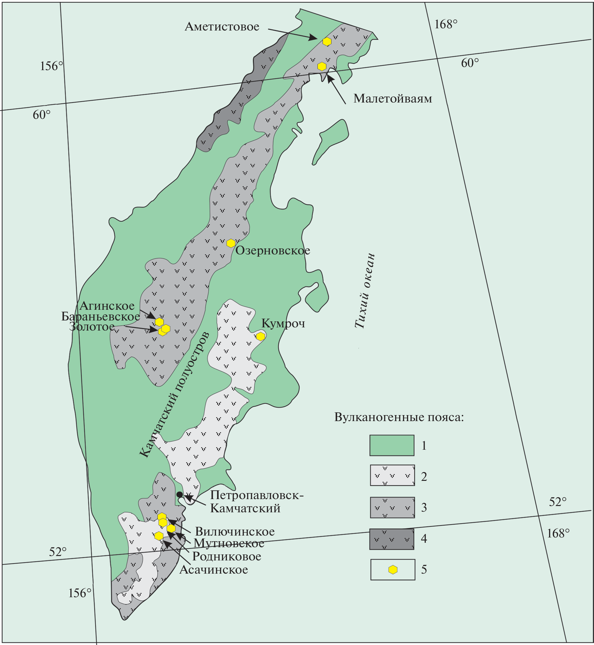 - Некрасов И.Я. Генезис Асачинского вулканогенного золотого месторождения на Камчатке // Докл. РАН. 19962. Т. 348. № 1. С. 94–96.