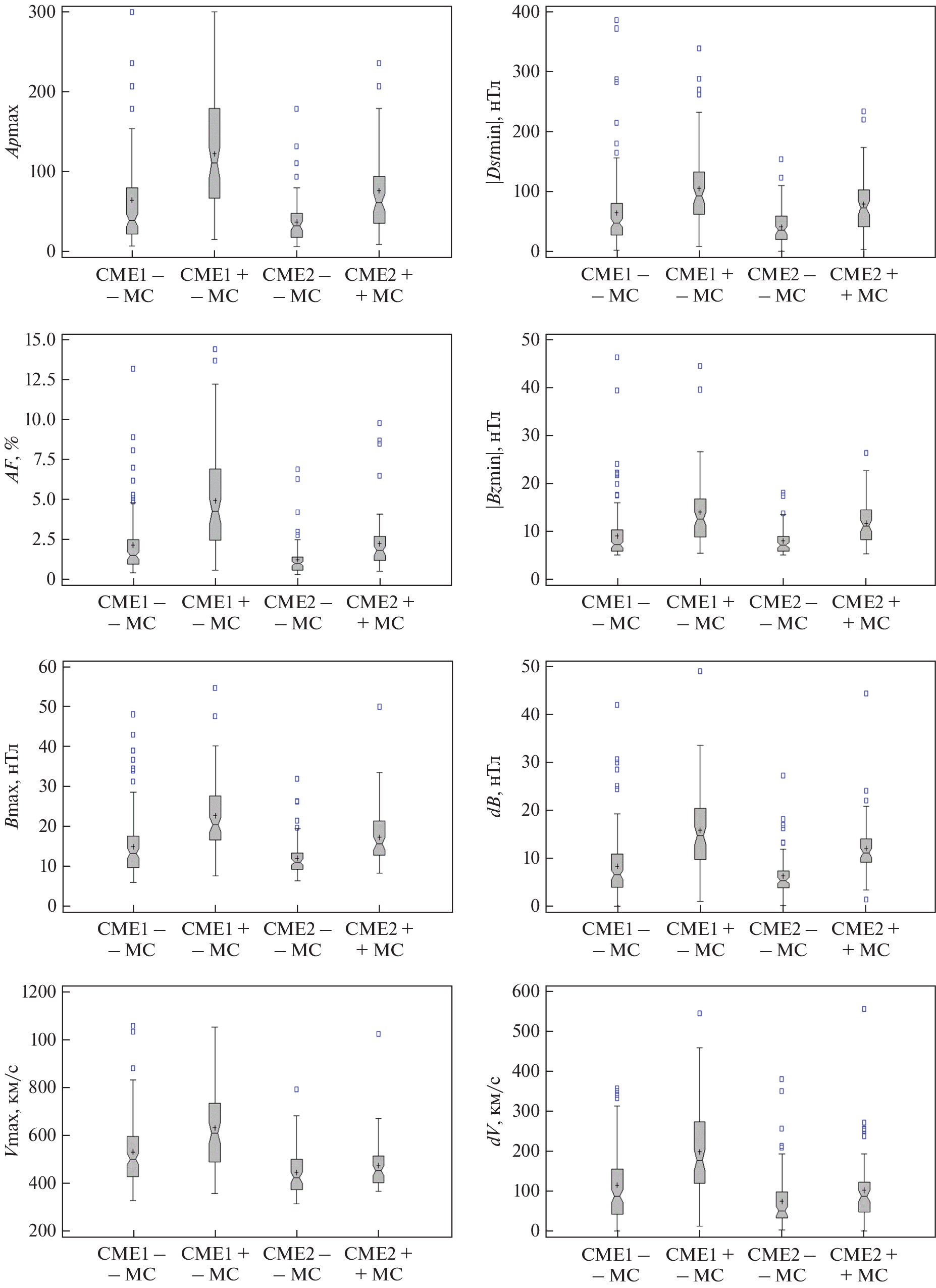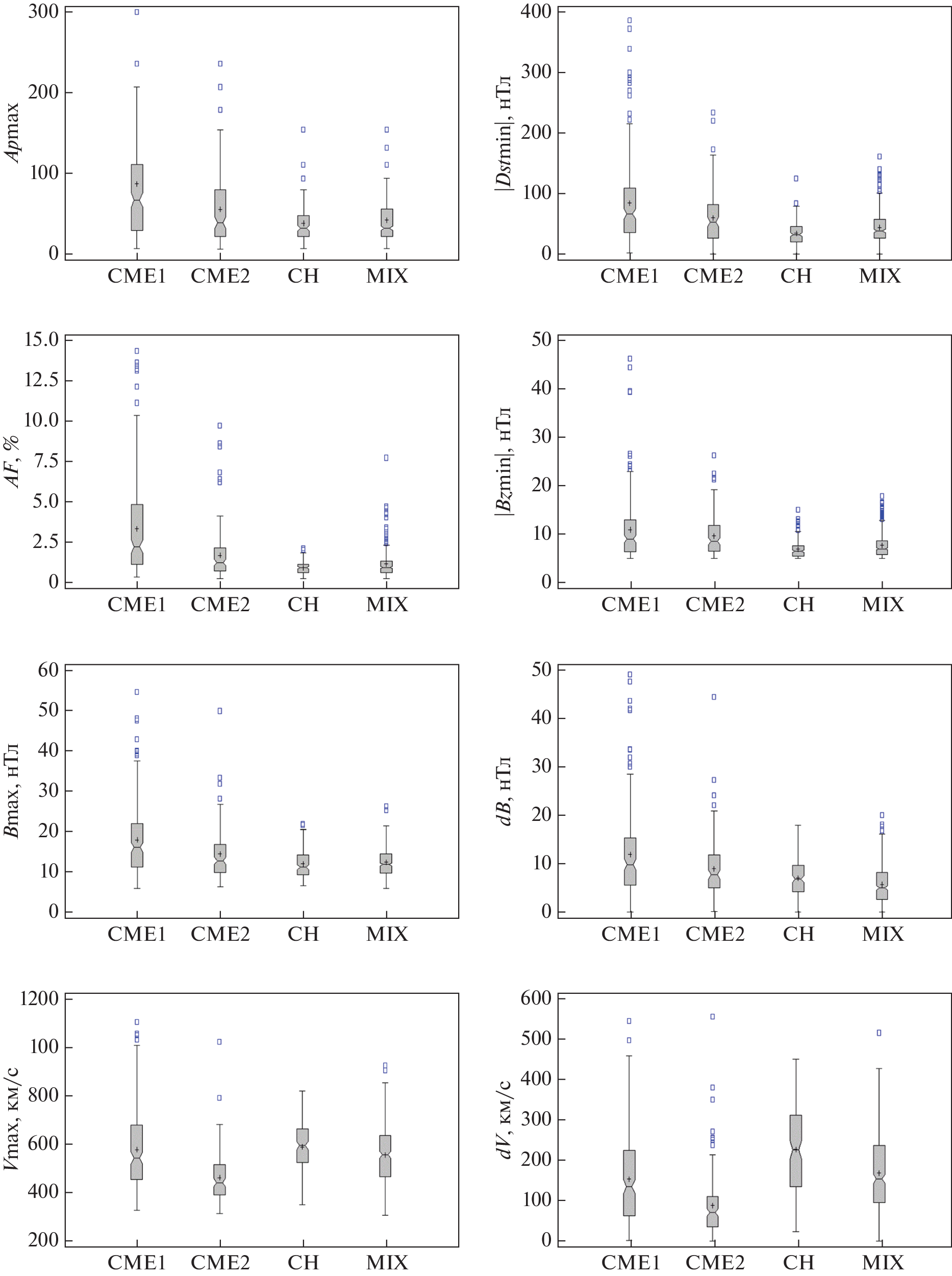 - – Мелкумян А.А., Белов А.В., Абунина М.А., Абунин А.А., Ерошенко Е.А., Оленева В.А., Янке В.Г. Поведение скорости и температуры солнечного ветра в межпланетных возмущениях, создающих Форбуш-понижения // Геомагнетизм и аэрономия. Т. 60. № 5. С. 547–556. 2020.
