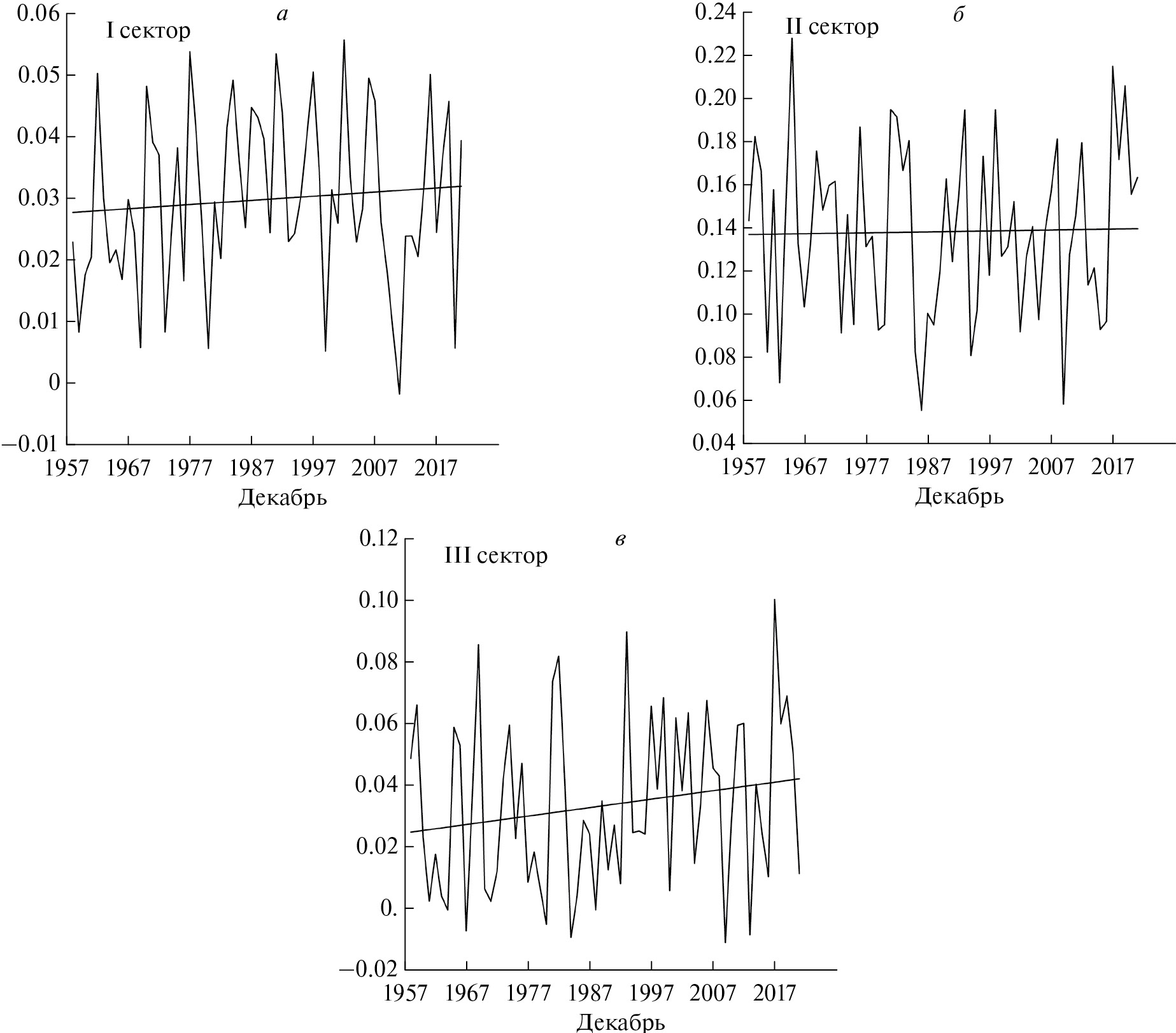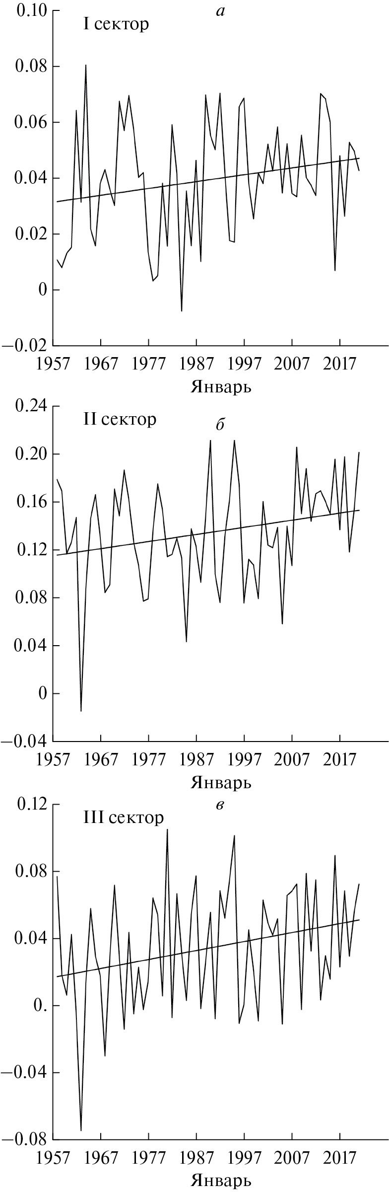 Таблица 1. Уровни значимости трендов в каждом секторе для исследуемых месяцев за период с 1958 по 2021 гг.