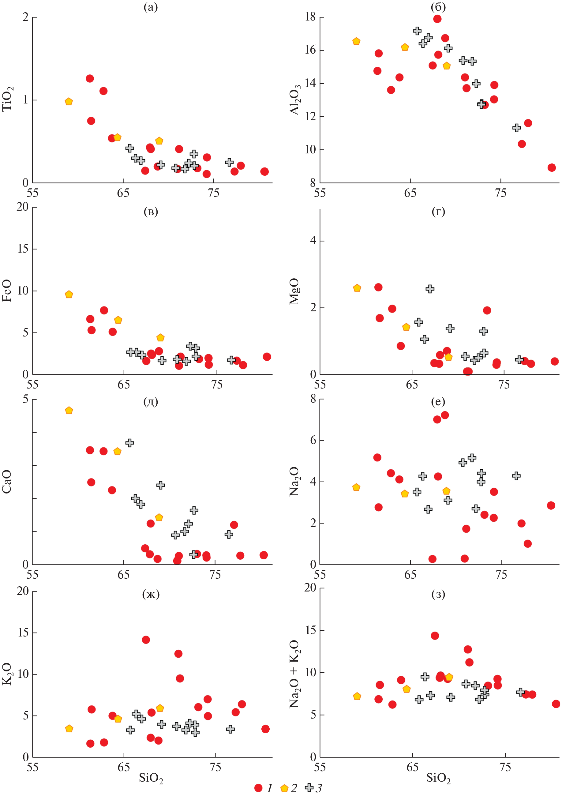 - Whalen J.B., Currie K.L., Chappell B.W. A-type granites-geochemical char-acteristics, discrimination and petrogenesis // Contrib. Mineral. Petrol. 1987. Vol. 95. P. 407–419.
