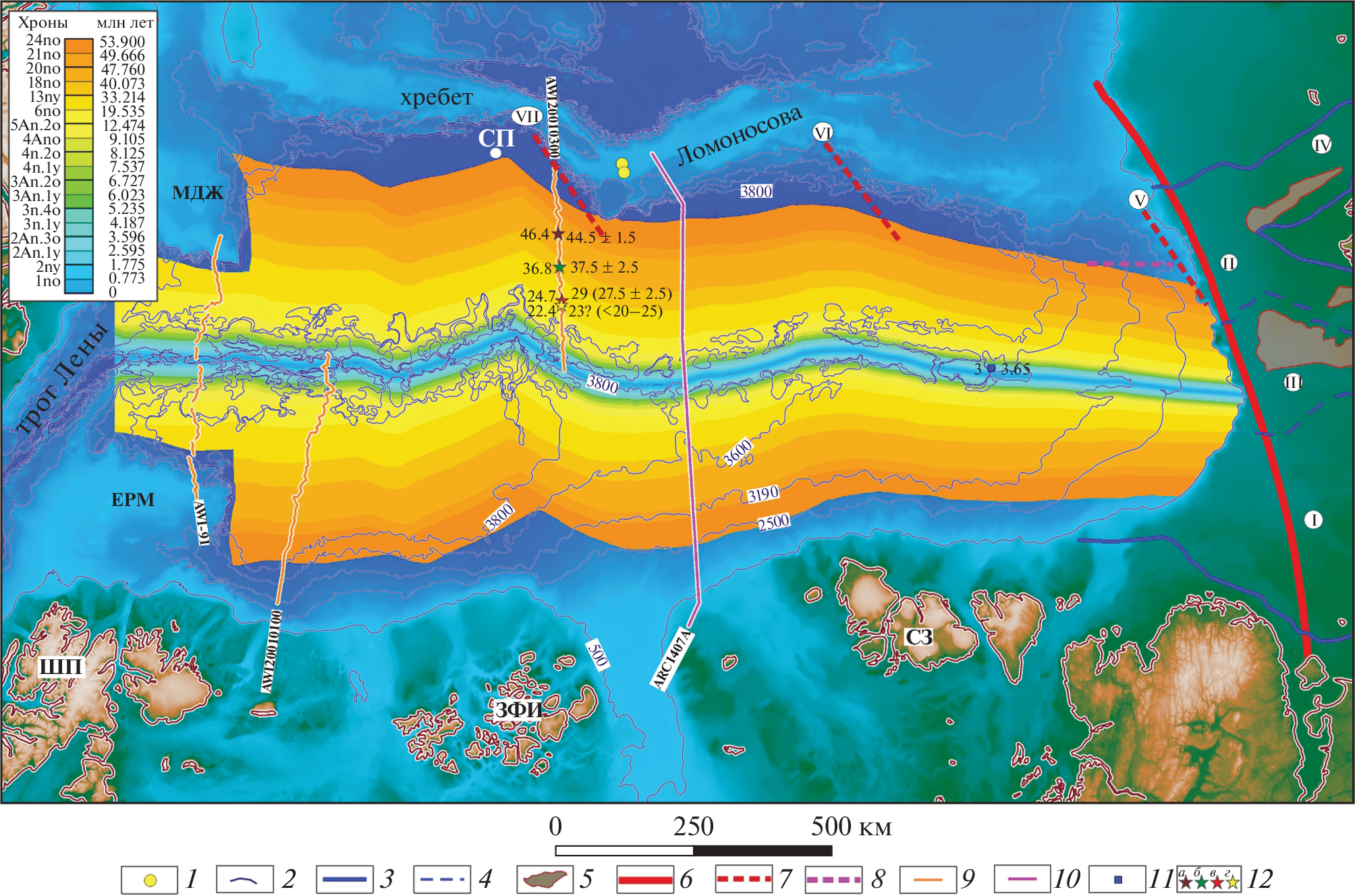 - Rekant P., Sobolev N., Portnov A., Belyatsky B., Dipre G., Pakhalko A., Kaban’kov V., Andreeva I. Basement segmentation and tectonic structure of the Lomonosov Ridge, Arctic Ocean: Insights from bedrock geochronology // J. Geodynam. 2019. Vol. 128. P. 38–54. https://doi.org/10.1016/j.jog.2019.05.001