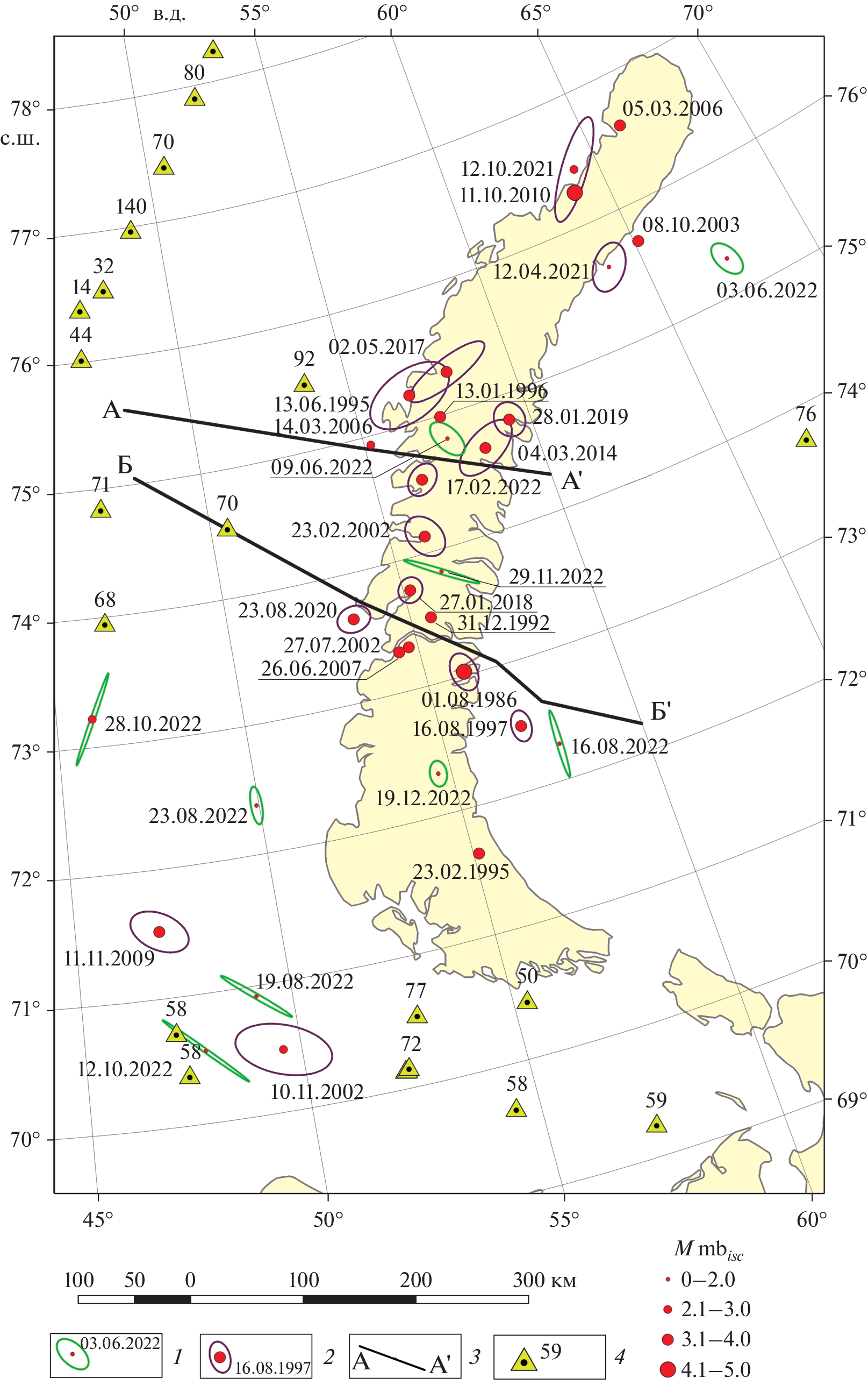 - Vorobieva I.A., Gvishiani A.D., Shebalin P.N., Dzeboev B.A., Dzeranov B.V., Skorkina A.A., Sergeeva N.A., Fomenko N.A. Integrated Earthquake Catalog II: The Western sector of the Russian Arctic // Applied Sciences. 2023. Vol. 13. № 7084. https://doi.org/10.3390/app13127084