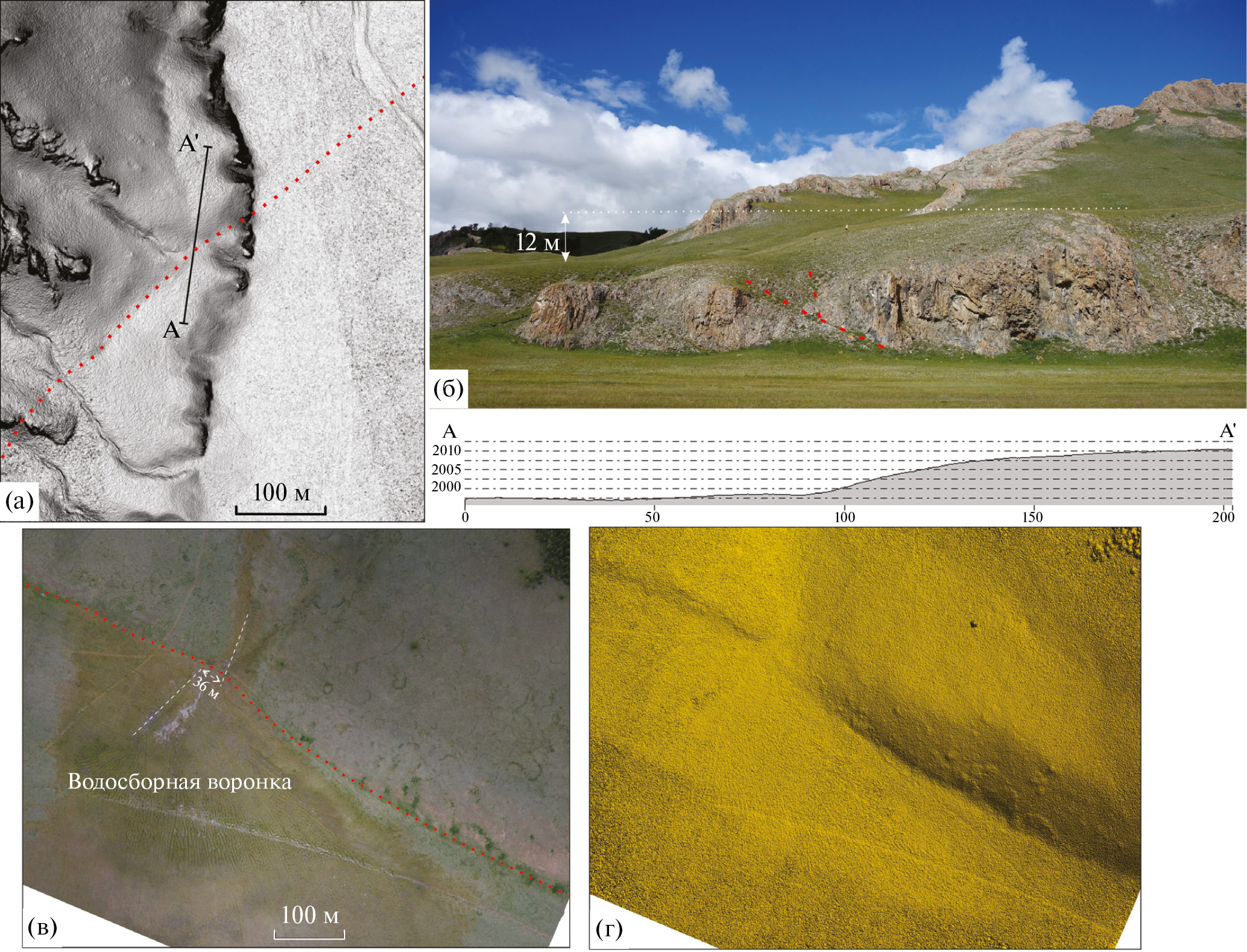 Мы интерпретировали их как последовательное наращивание общего смещения подвижкой при еще одном предыдущем сейсмическом событии. Общее смещение при семи выявленных событиях достигает ~39 м.