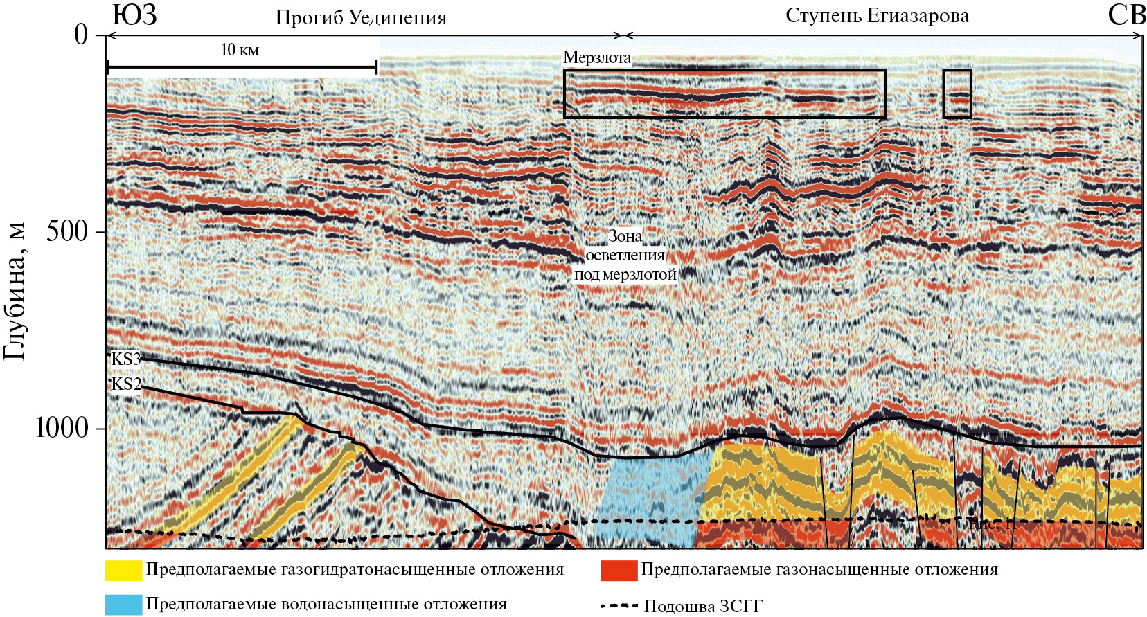 Интерпретация данных сейсморазведки в пределах прогнозируемых мерзлых толщ и зоны стабильности газовых гидратов