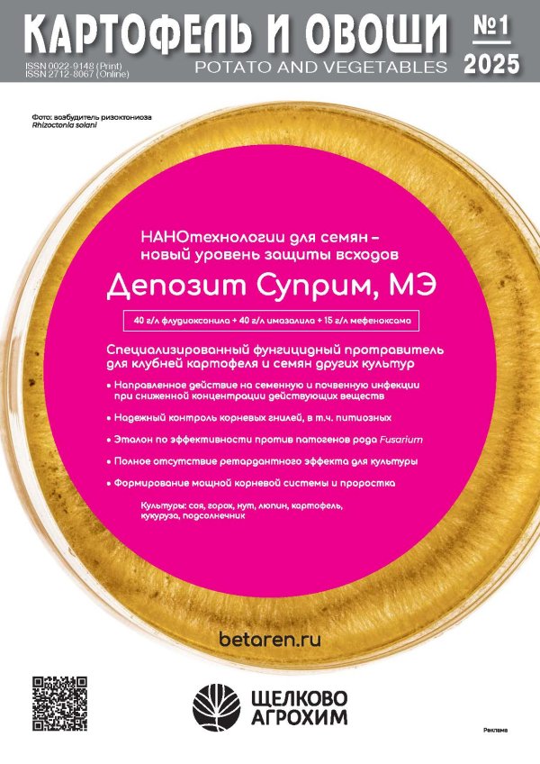 Фасоль обыкновенная (Phaseolus vulgaris L.) – одна из самых важных зерновых бобовых культур в мире. Основной фактор, препятствующий выращиванию фасоли в условиях Московской области, – отсутствие сортов, приспособленных для выращивания. Однако широкому распространению культуры фасоли препятствуют различные болезни и абиотические стрессоры, которые существенно снижающие (до 40% и более) продуктивность растений, и качество их продукции. Фасоль поражается грибными, бактериальными и вирусными болезнями. Из грибных болезней наиболее вредоносны антракноз, фузариоз, белая и серая гнили, мучнистая роса. Цель исследований заключается в изучении влияния биопраймирования на полевую устойчивость фасоли к комплексу патогенов. В результате изучения влияния различных вариантов биопраймирования на полевую устойчивость фасоли к комплексу патогенов в условиях Центральной части поймы реки Москва – Быковского расширения выделены Rhizobium leguminosarum и Арксой Азот + Арксойл Фосфор. Данные варианты предпосевной обработки семян способствую сдерживанию развития комплекса патогенов, так как средний балл поражения за три года наблюдения составляет в среднем 1,2, что характеризуется слабовосприимчивой группой. Применение биопраймирования позволило улучшить общую урожайность относительно контроля. Максимальные показатели урожайности были отмечены при применении Rhizobium leguminosarum во все годы исследования, в 2022 году прибавка относительно к контролю составил 30,6%, в 2023 году – 28,8%, а в 2024 году – 40,5%. Применение Арксойл Азот + Арксойл Фосфор позволило увеличить урожайность на 19,5%. В 2022 и 2023 годах биопраймирование препаратами Азотовит+Фосфатовит и Арксойл Азот + Арксойл Фосфор обеспечило прибавку урожайности 12 и 13% соответственно. В 2024 году применение Азотовит+Фосфатовит обеспечило урожайность 2,69 кг/м2, что выше контроля на 17,4%, а применение Арксойл Азот + Арксойл Фосфор позволило увеличить урожайность на 19,5%.