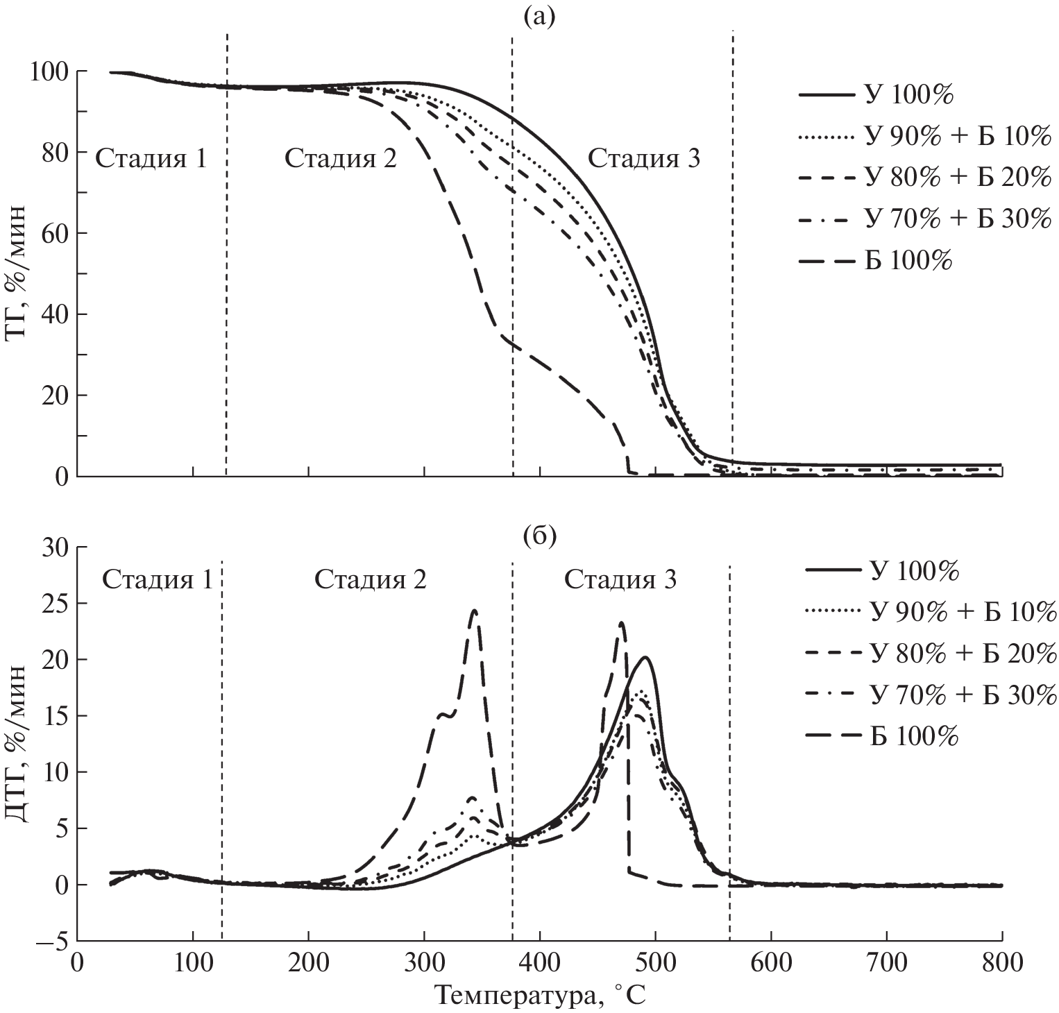 С применением современных методик, аналитического и экспериментального оборудования определены характеристики процессов термического разложения и горения, включая концентрации основных компонентов дымовых газов (CO, CO2, NOx, H2S + SO2), при нагреве мелкодисперсных частиц (100–200 мкм) черногорского каменного угля, древесины лиственницы и смесей на их основе. Содержание биомассы в составе топливных смесей на основе угля составляло 10, 20 и 30 мас. %. Методом синхронного термического анализа для индивидуальных твердых топлив и их смесей установлены температуры, при которых происходит воспламенение коксового остатка и завершение процесса горения. Опилки лиственницы более реакционно способные по сравнению с черногорским каменным углем, благодаря наиболее низкой температуре, при которой происходит зажигание углеродного остатка, поэтому добавление даже 10% биомассы к углю оказывает положительное влияние на реакционную способность смеси. В условиях нагрева топлив в потоке воздуха при температурах 500–800°С с помощью программно-аппаратного комплекса высокоскоростной видеорегистрации быстропротекающих процессов определены времена задержки зажигания. По результатам проведенных исследований установлено, что времена задержки зажигания рассматриваемых топлив в потоке разогретого воздуха варьируются в диапазоне от 0.02 до 0.22 с, а добавление 10–30 мас. % биомассы к углю снижает времена задержки зажигания топливных смесей до 50%. Анализ дымовых газов при горении твердых топлив позволил установить концентрации основных антропогенных выбросов, использование биомассы в качестве добавки к углю снижает выбросы диоксида углерода, оксидов азота и соединений серы (H2S + SO2) на 2.2–13.5%; 6.2–28.9% и 18.2–33.3% растет соответственно.