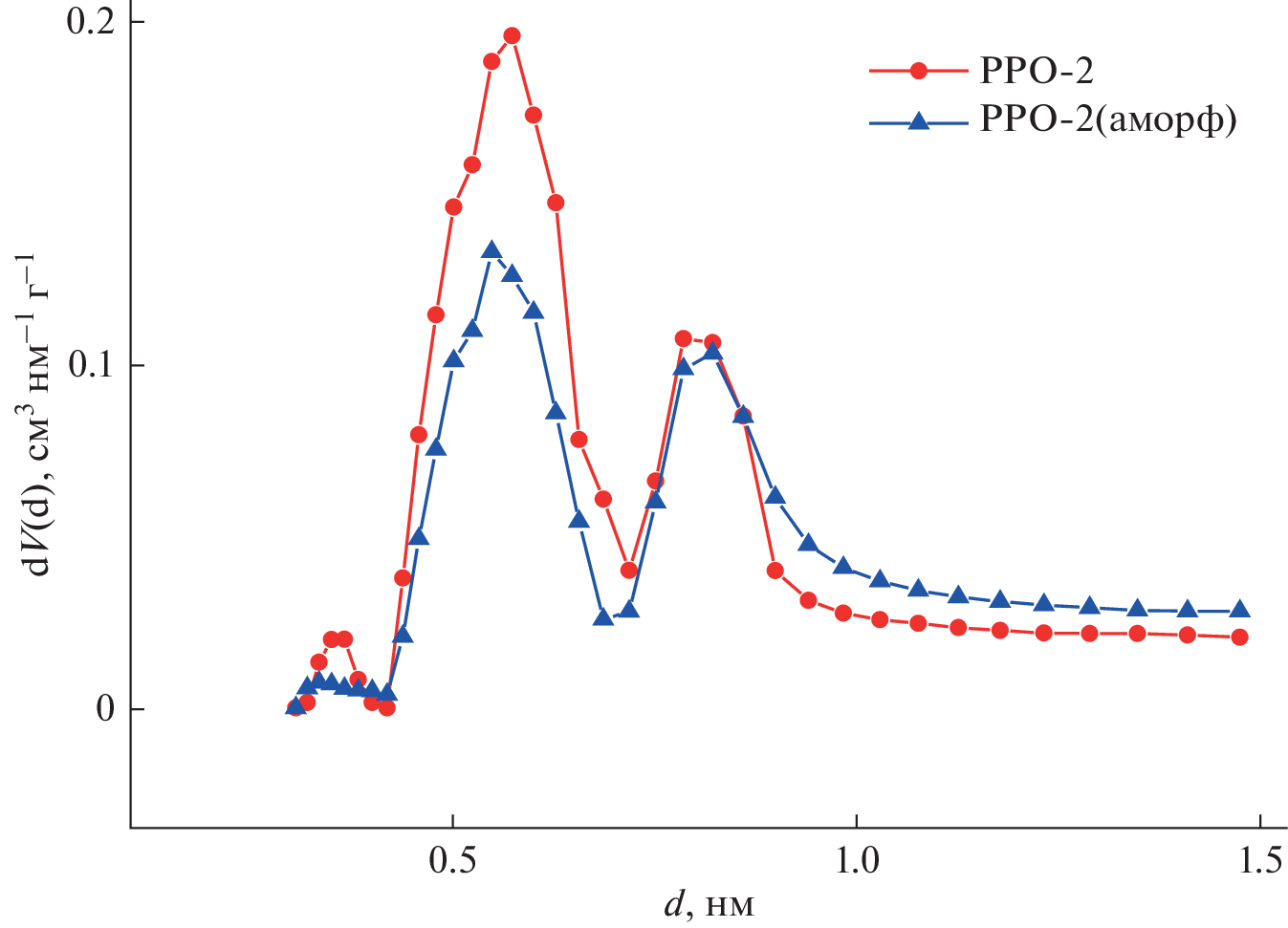 Data on microporosity (micropore size distribution) in the range from several angstroms to several nanometers, obtained by measuring the positron annihilation lifetime (PALS method) and by measuring CO2 sorption (low-temperature gas sorption, LTGS) are collated for a number of polymers with amorphous (polyetherimides, PEI) and semicrystalline (polyphenylene oxides, PPO) structures. The microporosity estimates based on the positron annihilation and CO2 sorption data are compared with published data obtained both