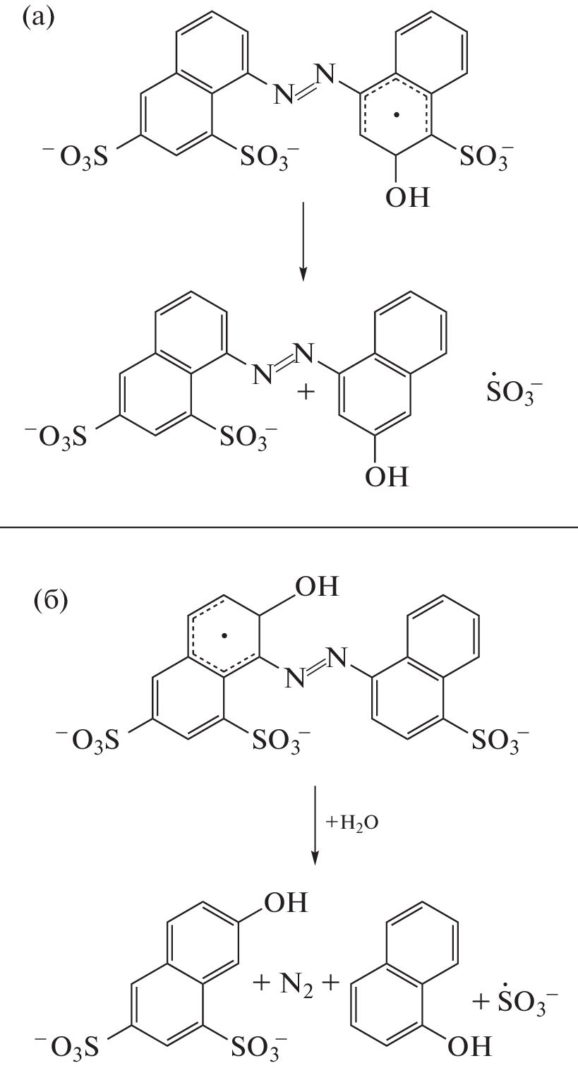The electron-beam treatment of an aqueous solution of the azo dye Ponceau 4R (0.02 g/dm3) at a dose of 1.5 kGy in air led to the complete elimination of color and genotoxicity. The addition of OH radicals to the system of conjugated bonds of the dye (the formation of OH adducts) was a key radiolytic process, which led to the elimination of side groups with lower binding energies