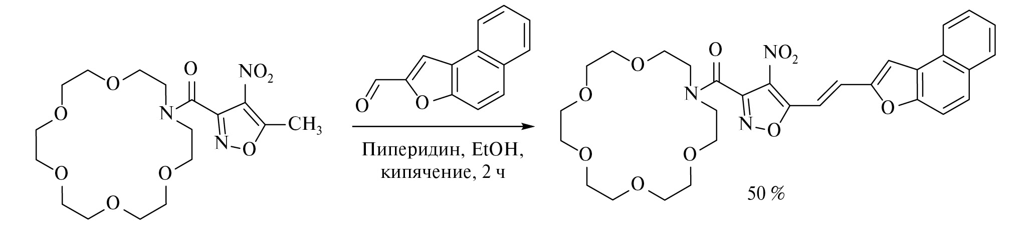 Производные изоксазола представляют собой соединения, обладающие перспективными фотохимическими характеристиками. Различные модификации молекул данного класса позволяют варьировать их свойства [1, 2]. Так, введение ароматических заместителей и нитрогруппы приводит к батохромному смещению поглощения и флуоресценции, а также обуславливает повышение фотоактивности [3]. Включение в структуру молекул таких лигандов, как краун-эфиры способствует образованию комплексов с ионами металлов и повышению флуоресценции [4]. Таким образом, данные соединения находят применение в качестве флуоресцентных меток и сенсоров на различные ионы металлов в клеточной среде [5, 6].