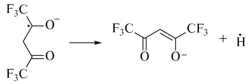 В газовой фазе анион-радикал нестабилен и быстро распадается с элиминированием ×Н [18]: