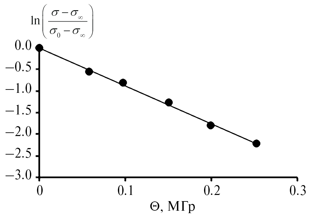 - Согласно данной модели, прочность полимера снижается от начального (максимального) значения σ0 ~ αNN0 до некоторого “остаточного” (минимального) значения σ∞ при N → 0, т.е.: