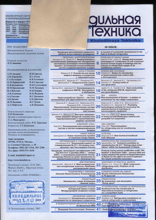 December 5, 2002 passed away Vladimir Konstantinovich Lemeshko, a well-known expert in the field of refrigeration engineering.