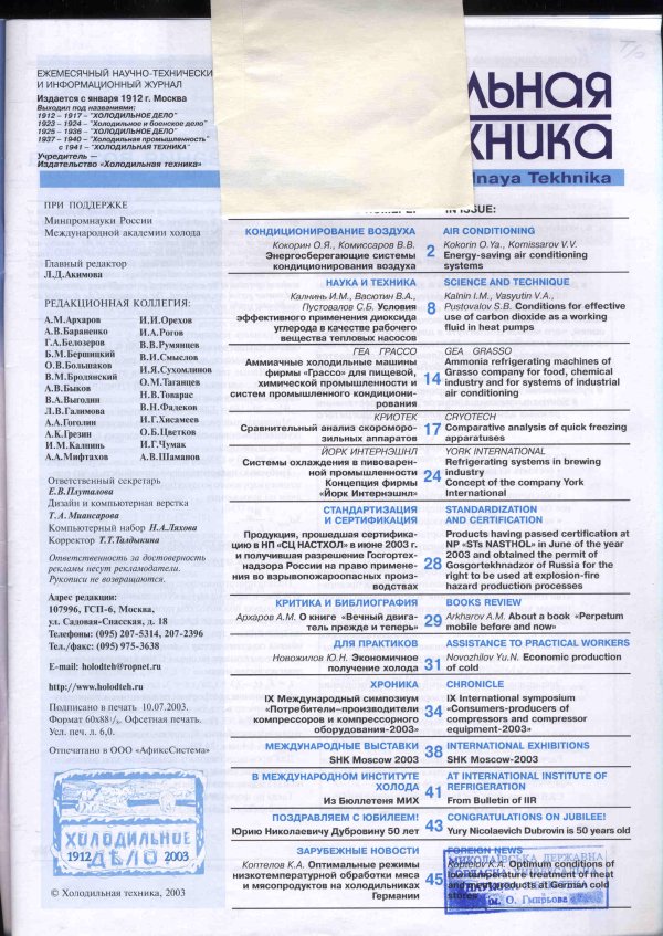 The IX International Symposium "Consumers-Makers of Compressors and Compressor Equipment-2003" was held on June 18-20, 2003 in St. Petersburg State Polytechnic University. Traditionally, it was organized by the department of compressor, vacuum and refrigeration engineering of SPbPU with the support of the university administration, the Association of Compressors and Pneumatic Engineers and the International Academy of Refrigeration. The general sponsor of the symposium was Gazprom.