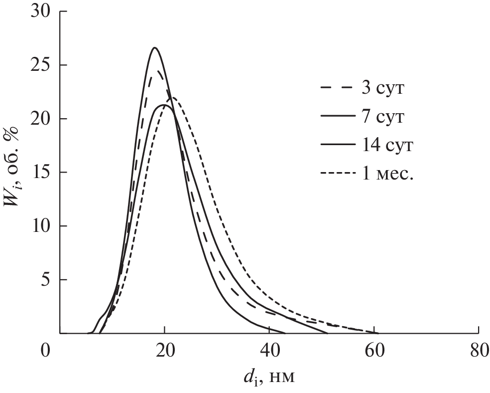Получены наноэмульсии (НЭ) простого состава, в которых полиоксиэтилен (4) лауриловый эфир (Бридж L4, Бр-4) является дисперсной фазой и стабилизатором, а вода − дисперсионной средой. Изучены свойства НЭ: распределение частиц по размерам, солюбилизационная емкость и транспортные свойства по отношению к липофильному биоциду основанию хлоргексидина (ХГ). Подтверждена агрегативная устойчивость НЭ в течение длительного времени (месяцы) и эффективный массоперенос ХГ частицами дисперсной фазы НЭ в водной среде. Обнаружен уникальный эффект самопроизвольного уменьшения размеров капель НЭ при солюбилизации ХГ, при этом их средний диаметр уменьшается с 52 ± 6 до 19 ± 3 нм. Причиной эффекта является образование на поверхности капель комплексов между молекулами Бр-4 и ХГ, которые лучше растворимы в воде, нежели Бр-4. Молекулы Бридж L4, вошедшие в состав комплексов, переносятся с поверхности капель в дисперсионную среду, что и приводит к уменьшению размеров. Комплексообразование происходит за счет образования множественных водородных связей N⋅⋅⋅H⋅⋅⋅O. В полиоксиэтилированном слое капель Бр-4 локализовано от 84 до 96% солюбилизированного в НЭ биоцида, что также обусловлено Н-связями.