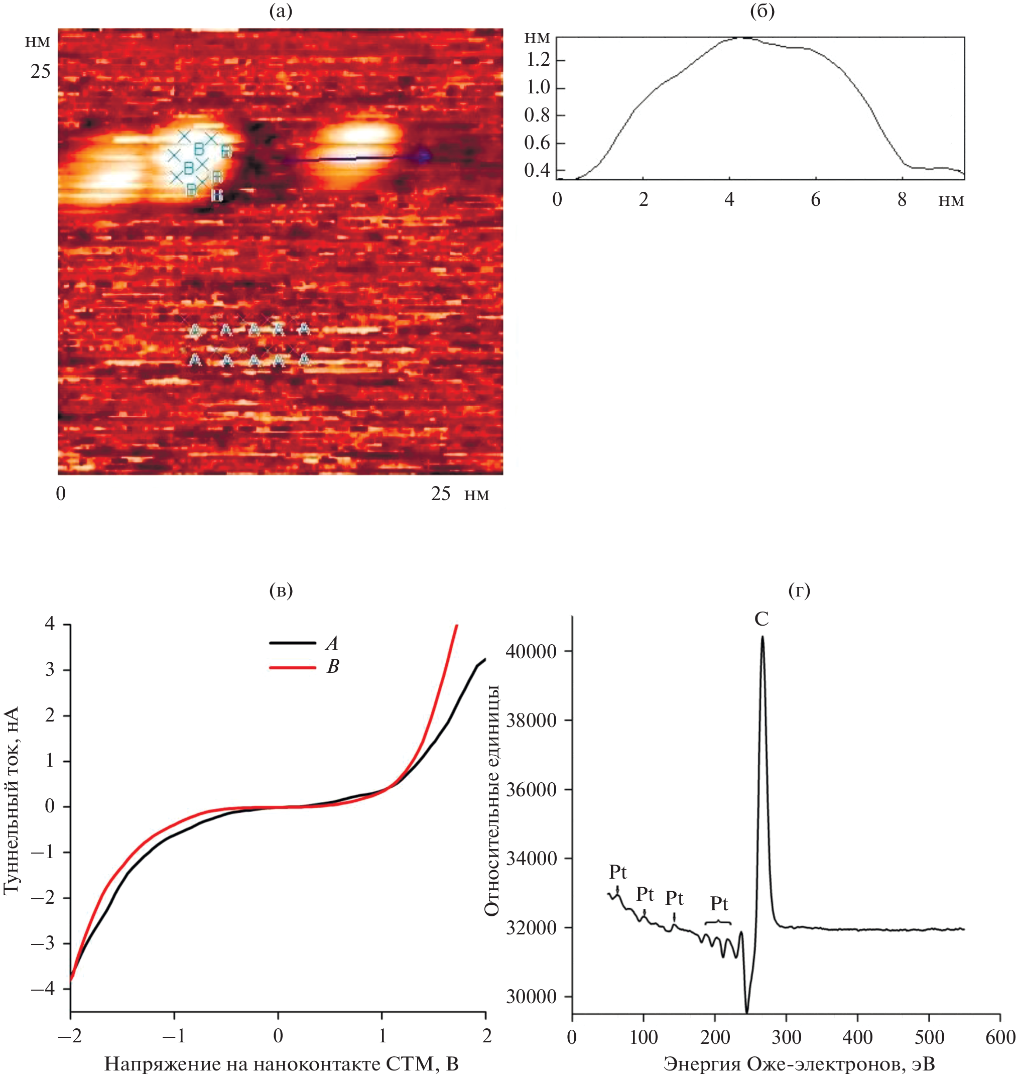 resulting from dissociative adsorption oxidize the surface of nanoparticles only near the platinum–graphite interface. As the exposure increases, the entire surface of the nanoparticles is covered with oxide. Thus, it has been shown that the adsorption properties of the surface of the platinum nanoparticles on graphite are not the same, and this fact provides the possibility to carry out different chemical reactions on different surface regions, thereby increasing the efficiency of the catalytic system as a whole.