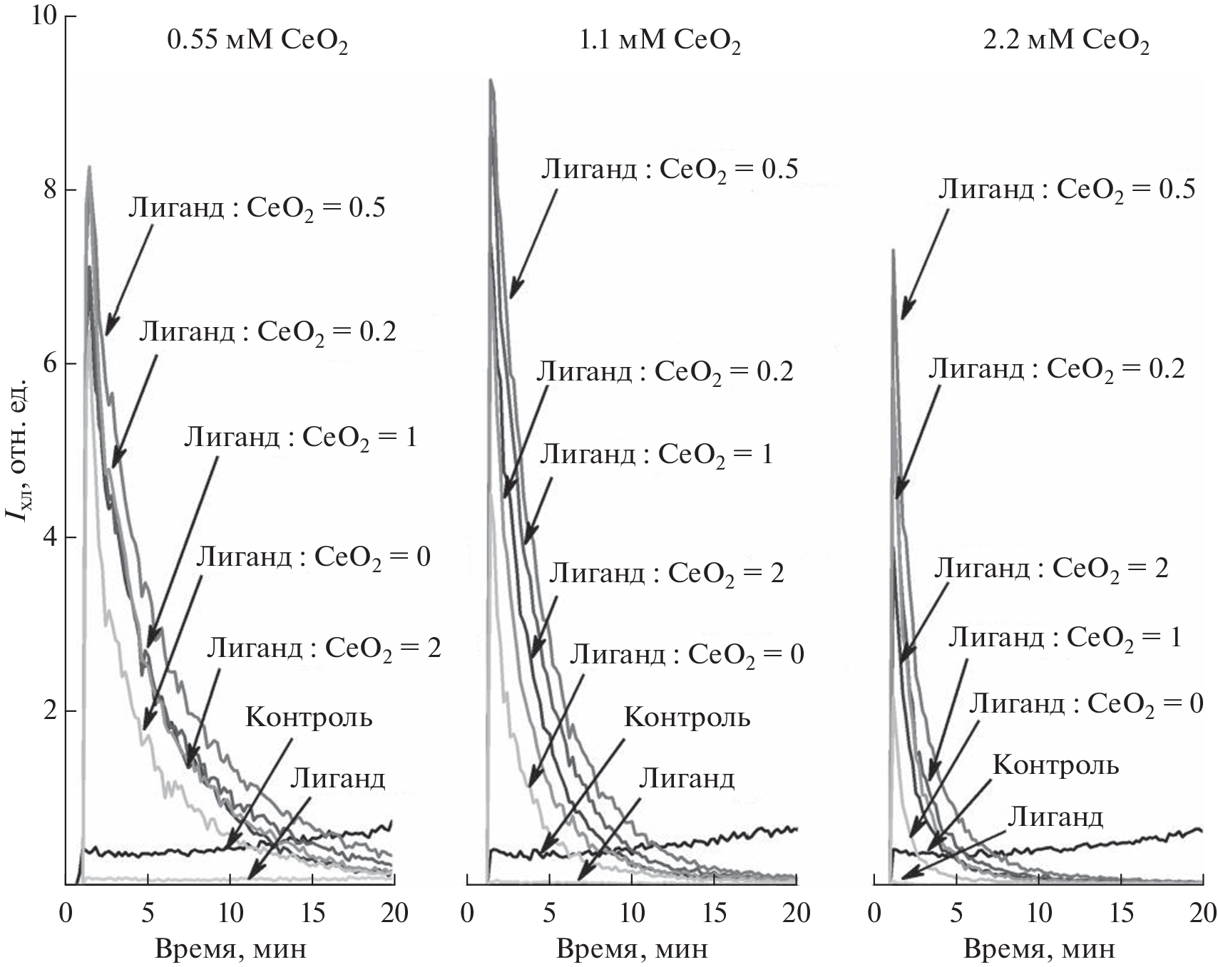 - Iranifam M., Haggi A., Akhteh H. et al. Synthesis of rod-like CeO2 nanoparticles and their application to catalyze the luminal–O2 chemiluminescence reaction used in the determination of oxcarbazepine and ascorbic acid // Analytical Sciences. 2022. V. 38. № 5. P. 787–793. https://doi.org/10.1007/s44211-022-00096-5