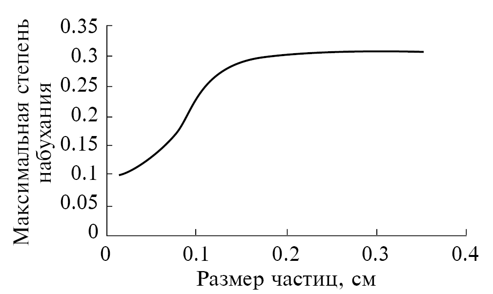 Рис. 6. Зависимость максимальной степени набухания плодов софоры японской от размера частиц.