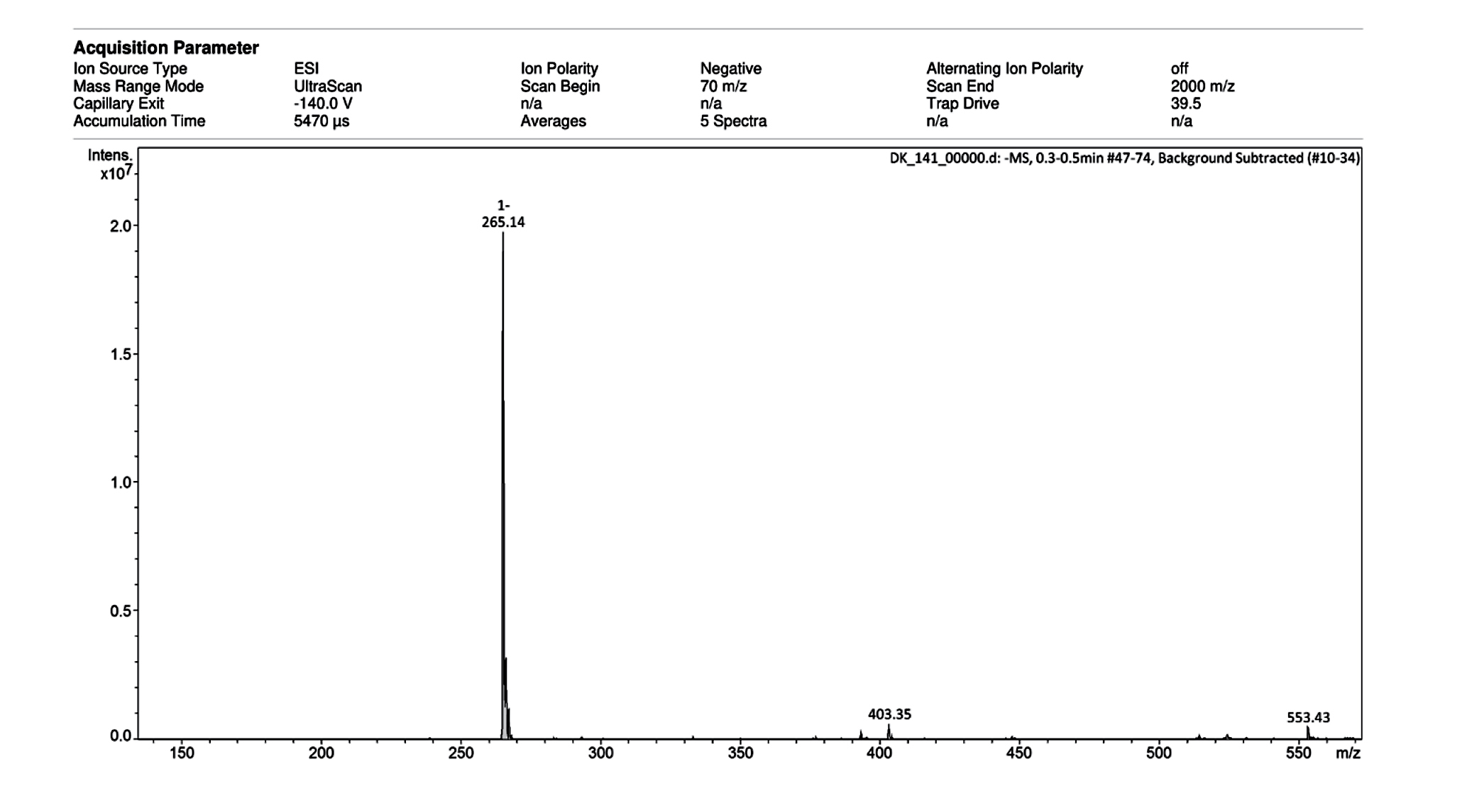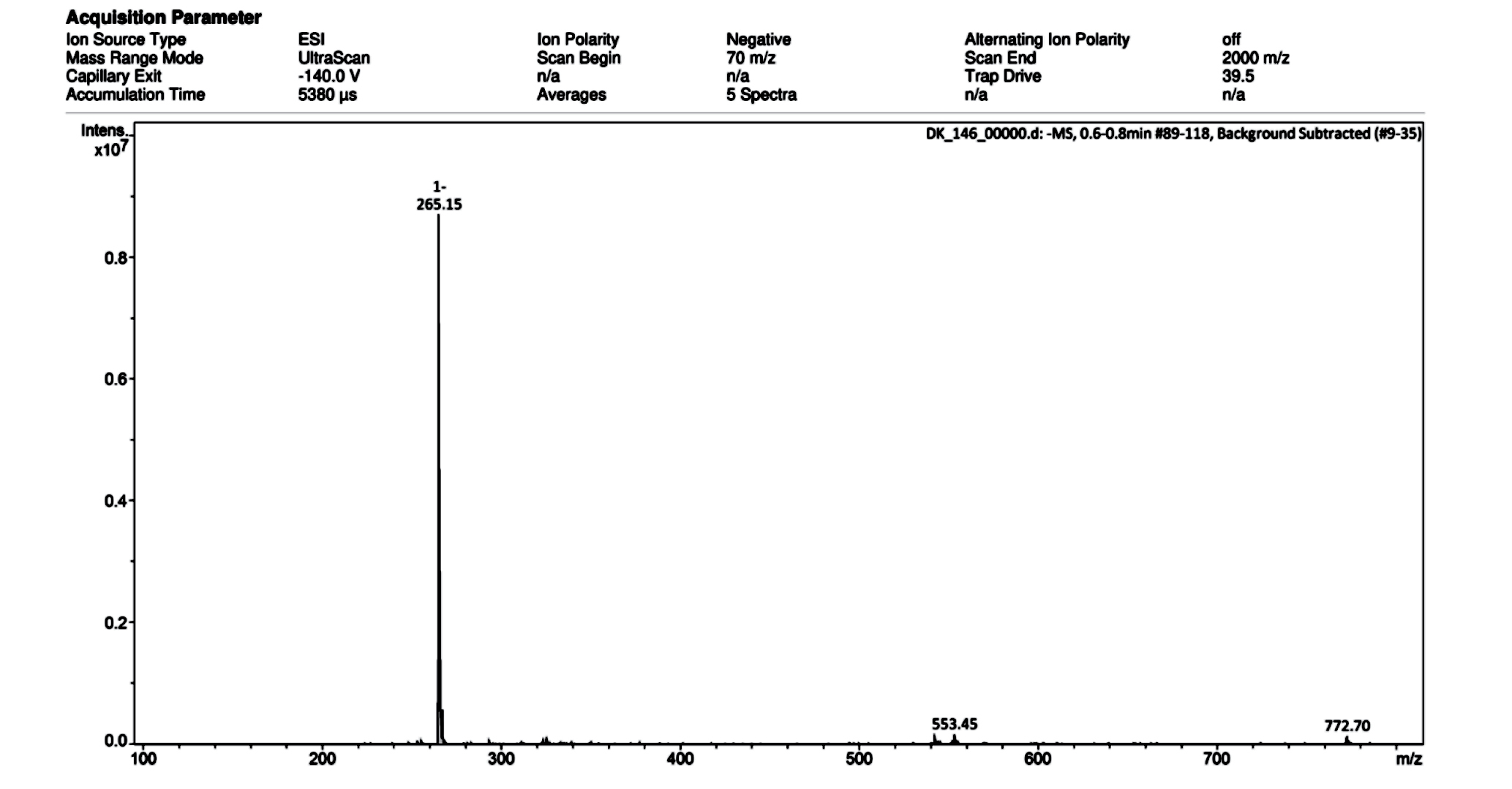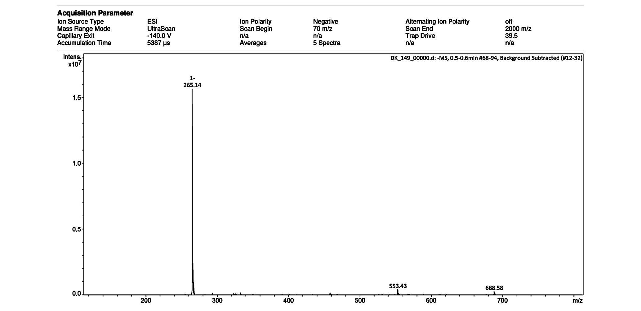 Рис. П7. Масс-спектр ИЭР соединения Мор-6(ДС) (регистрация отрицательных ионов).