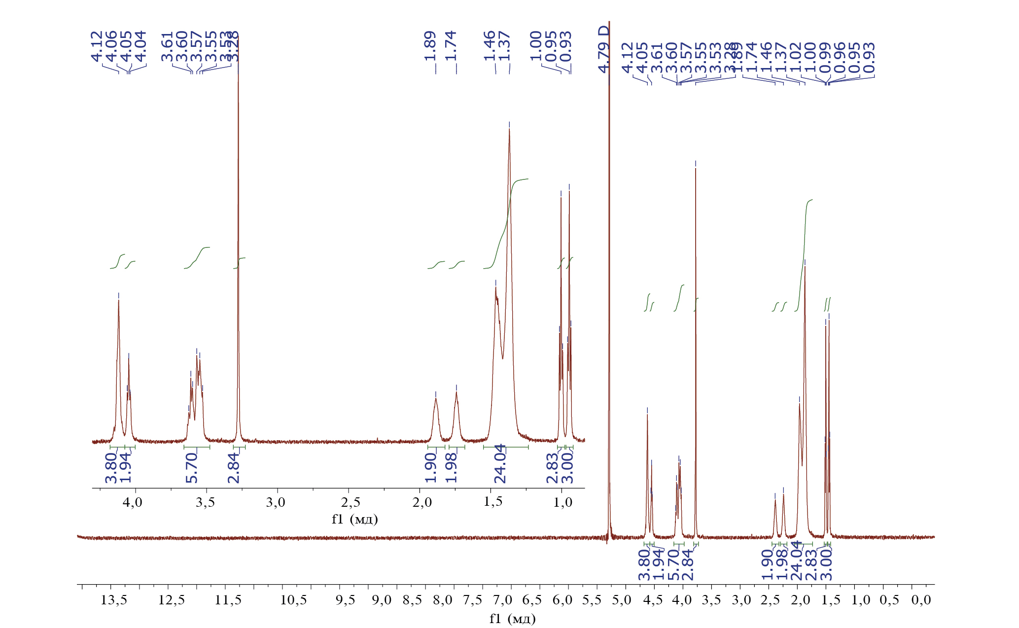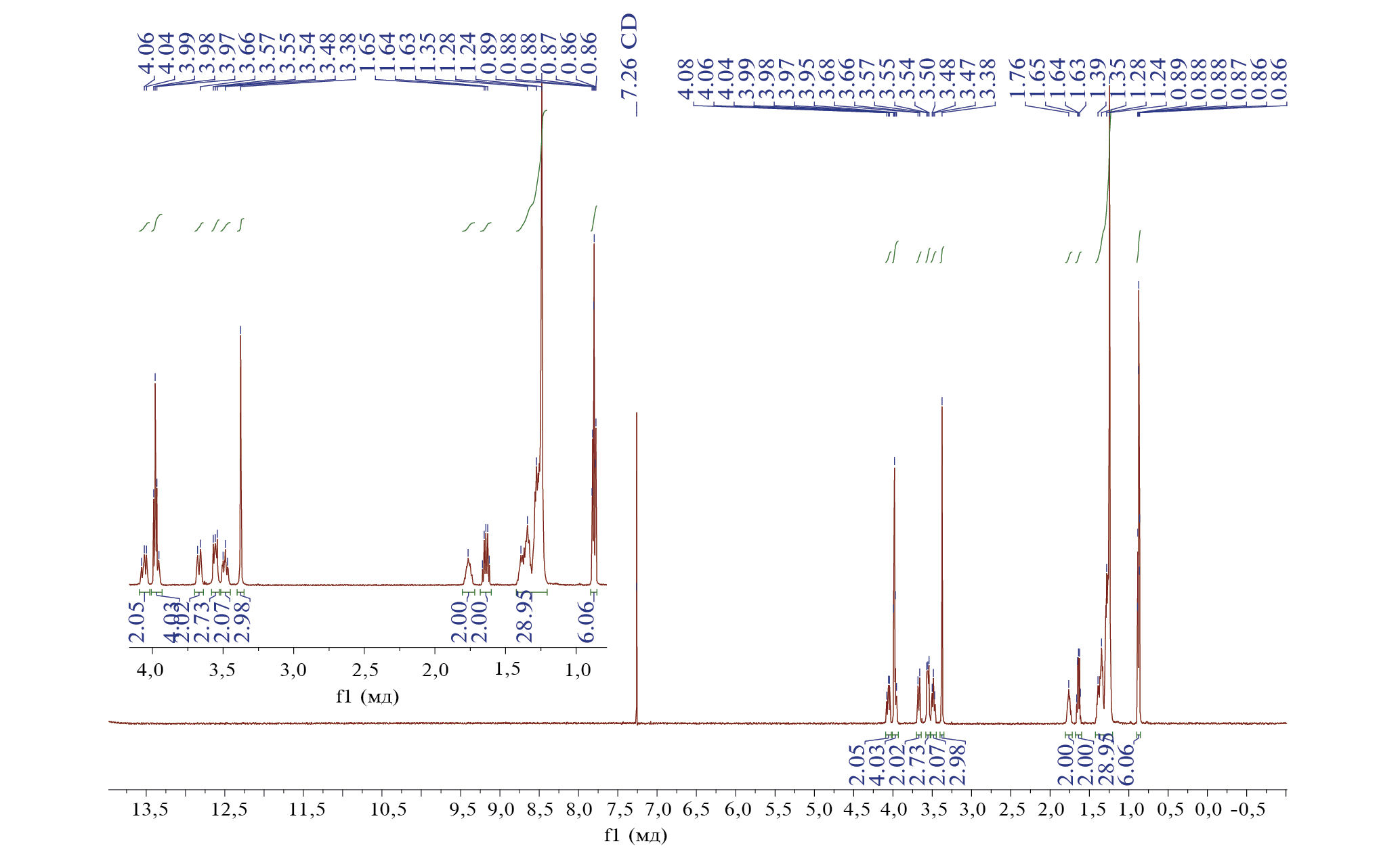 Рис. П1. ЯМР 1H спектр соединения Мор-4(ДС).