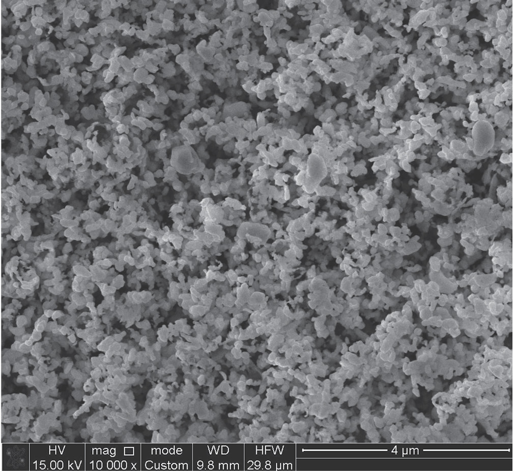 Морфологию, размер и элементный состав наночастиц изучали на сканирующем электронном микроскопе (СЭМ) Quanta 200i 3D (FEI, Нидерланды), оборудованном энергодисперсионной рентгеновской спектроскопией (ЭДС). Для анализа смесь 1 г образца и 40 мл воды обрабатывали в ультразвуковой ванне в течение 30 мин. Образец полученной суспензии наносили на кремниевую подложку для измерений СЭМ.