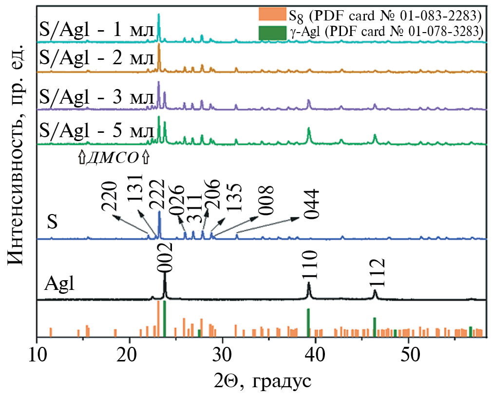 - Khan N.V., Burkitbayev M.M., Urakaev F.Kh. Preparation and properties of nanocomposites in the systems S-AgI and S-Ag2S-AgI in dimethyl sulfoxide // IOP Conference Series: Materials Science and Engineering. 2019. V. 704. № 1. P. 012007. https://doi.org/10.1088/1757-899X/704/1/012007