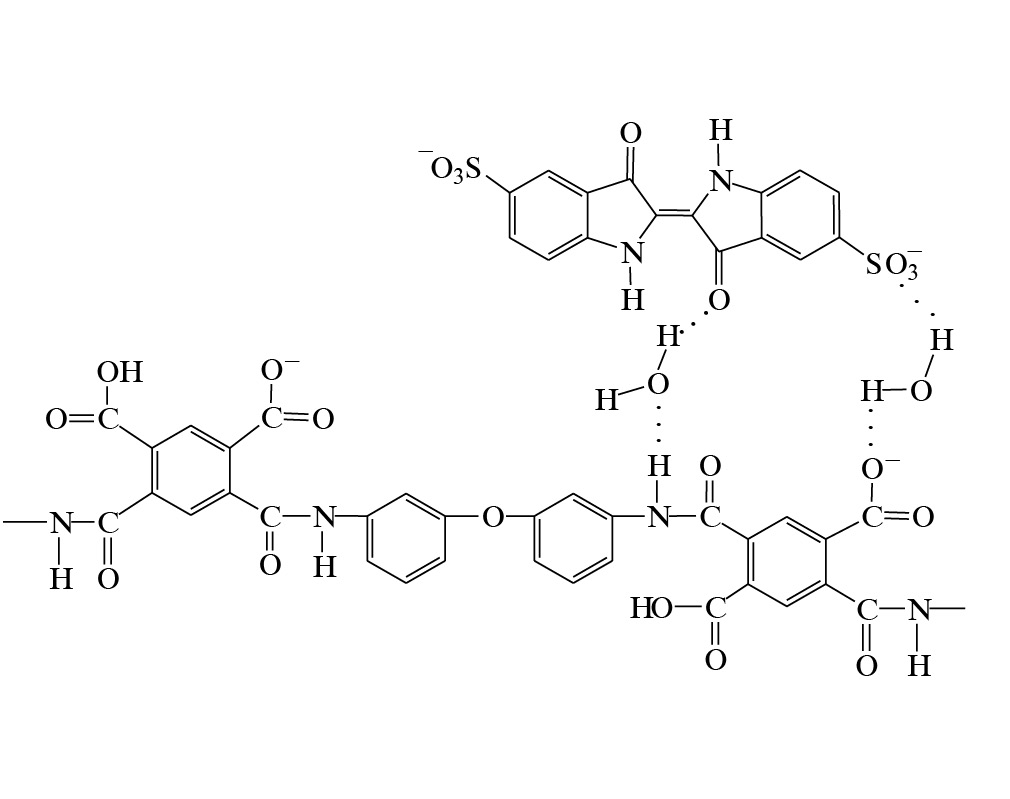 Рис. 9. Схема образования водородных связей молекул индигокармина Е132 и полиимида.