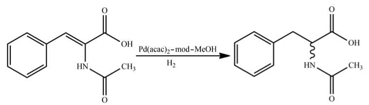 При гидрировании прохиральной С=С связи в N-ацетил-α-амидокоричной кислоте (α-ААКК) на исследуемых каталитических системах Pd(Acac)2–mod–H2 протекает реакция насыщения С=С связи по схеме 2.