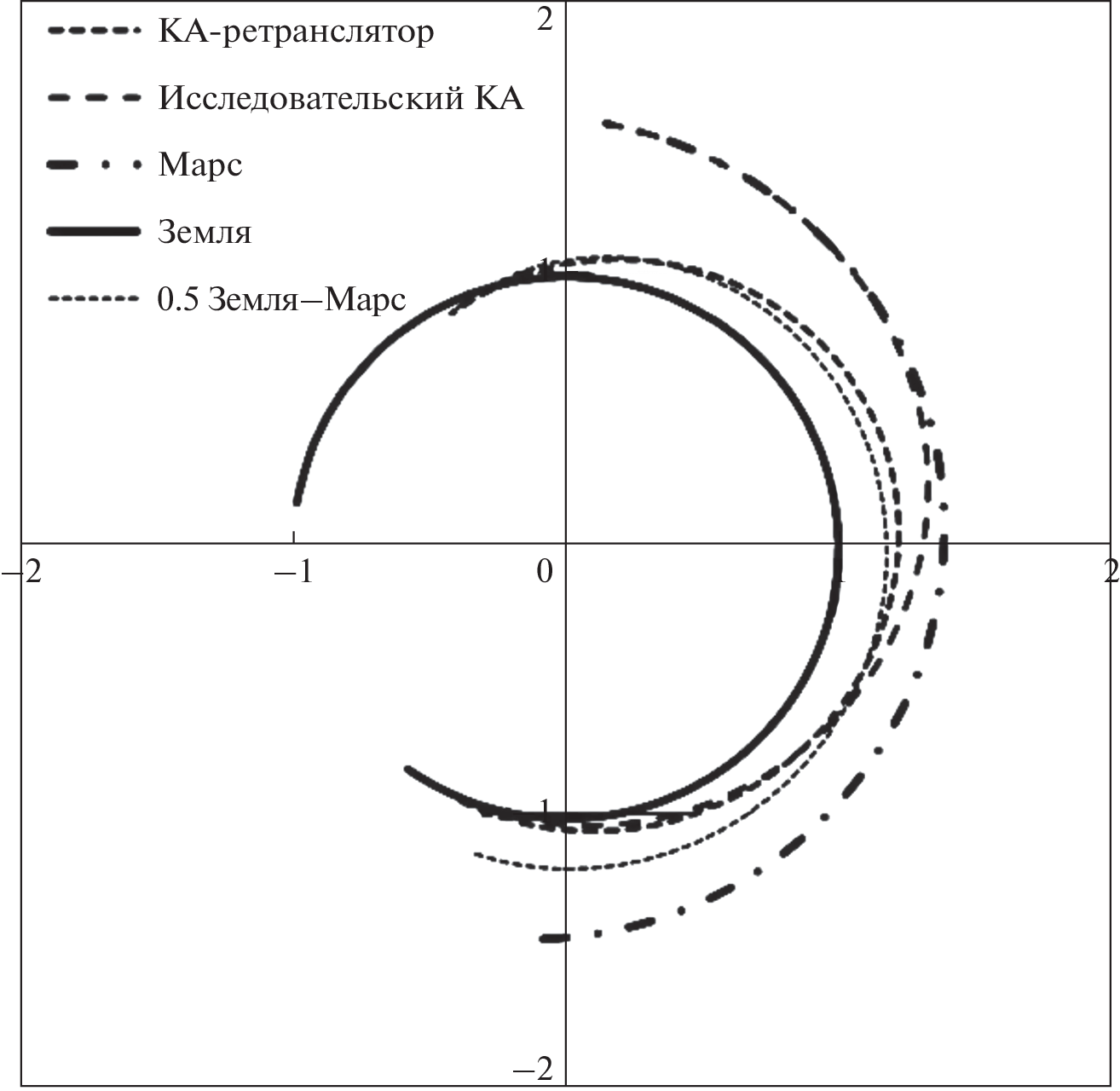 Исследование возможности использования сопровождающих КА-ретрансляторов в задачах обеспечения связи с КА дальнего космоса