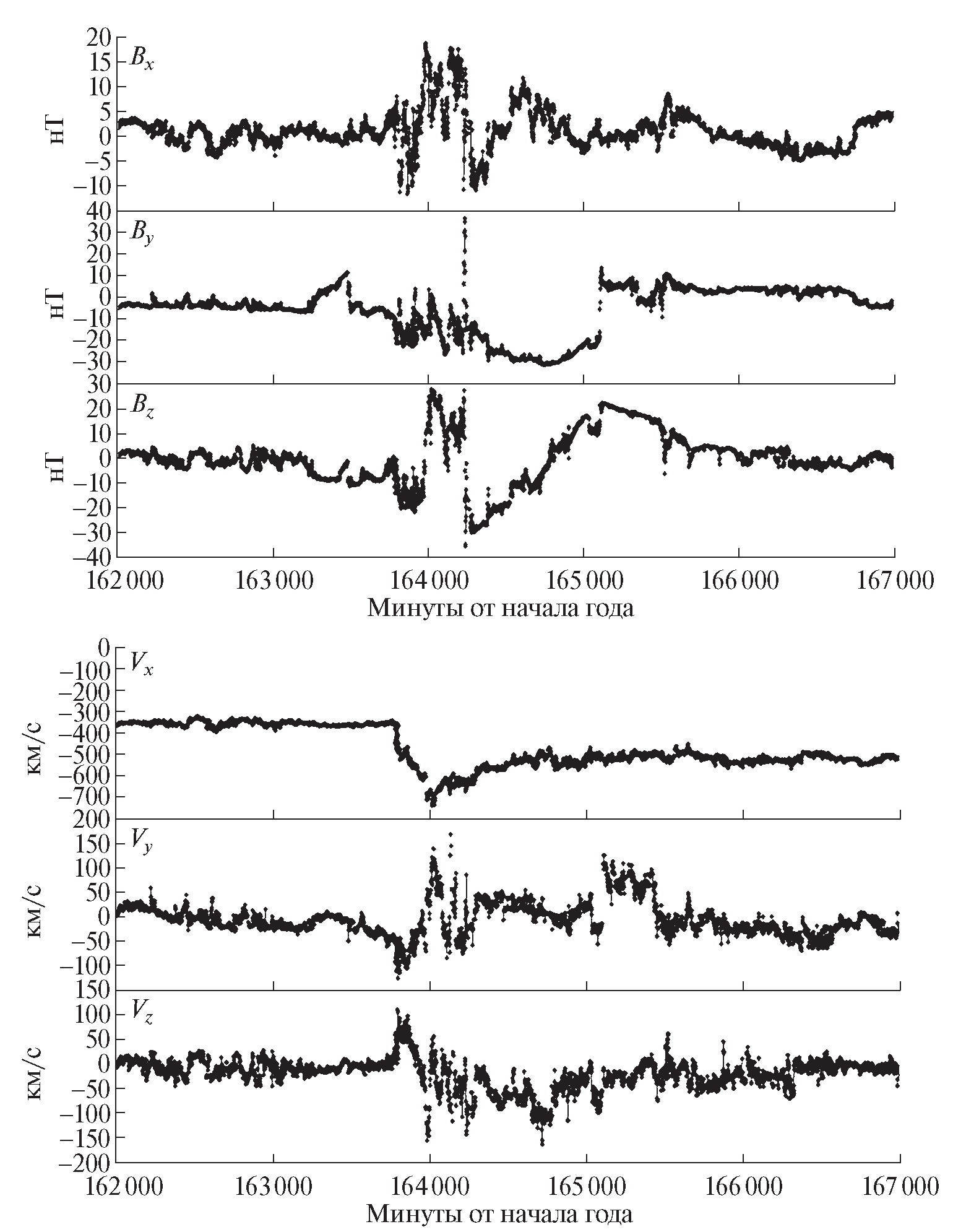 3 с для уточняющих реконструкций графов вектора ММП, анализа устойчивости синтеза фазовой траектории (https://spdf.gsfc.nasa.gov/pub/data/wind/mfi/ascii/3sec_ascii/).