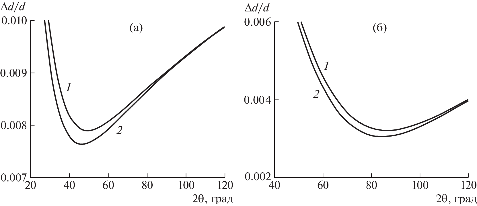 Для дифрактометра высокой светосилы, создаваемого для реактора ПИК (Гатчина), выполнены расчеты разрешения как численно, так и аналитически. Эти два подхода дали разные результаты. При численном расчете все траектории нейтронов ограничены геометрией оптических элементов. Поэтому дифракционный профиль имеет форму трапеции, что хорошо видно при больших углах дифракции. Аналитические формулы предполагают гауссовый профиль линии. Различие профилей приводит к различию кривых разрешения, рассчитанных численно и аналитически. Это различие особенно заметно для дифрактометров со средним и низким разрешением, оптимизированных на максимальную светосилу.