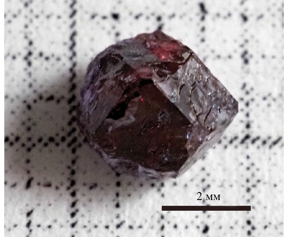Рис. 1. Фотография монокристалла LiyNd5 – yMo3O16 ± δ, освещенного светодиодной лампой (5600 К)