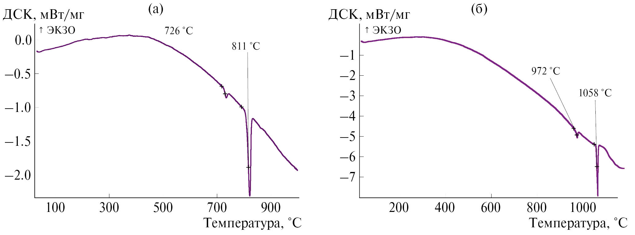 Рис. 6. Термограммы образцов Nd4Ru2Ga3 (а) и Er4Ru2Ga3 (б).