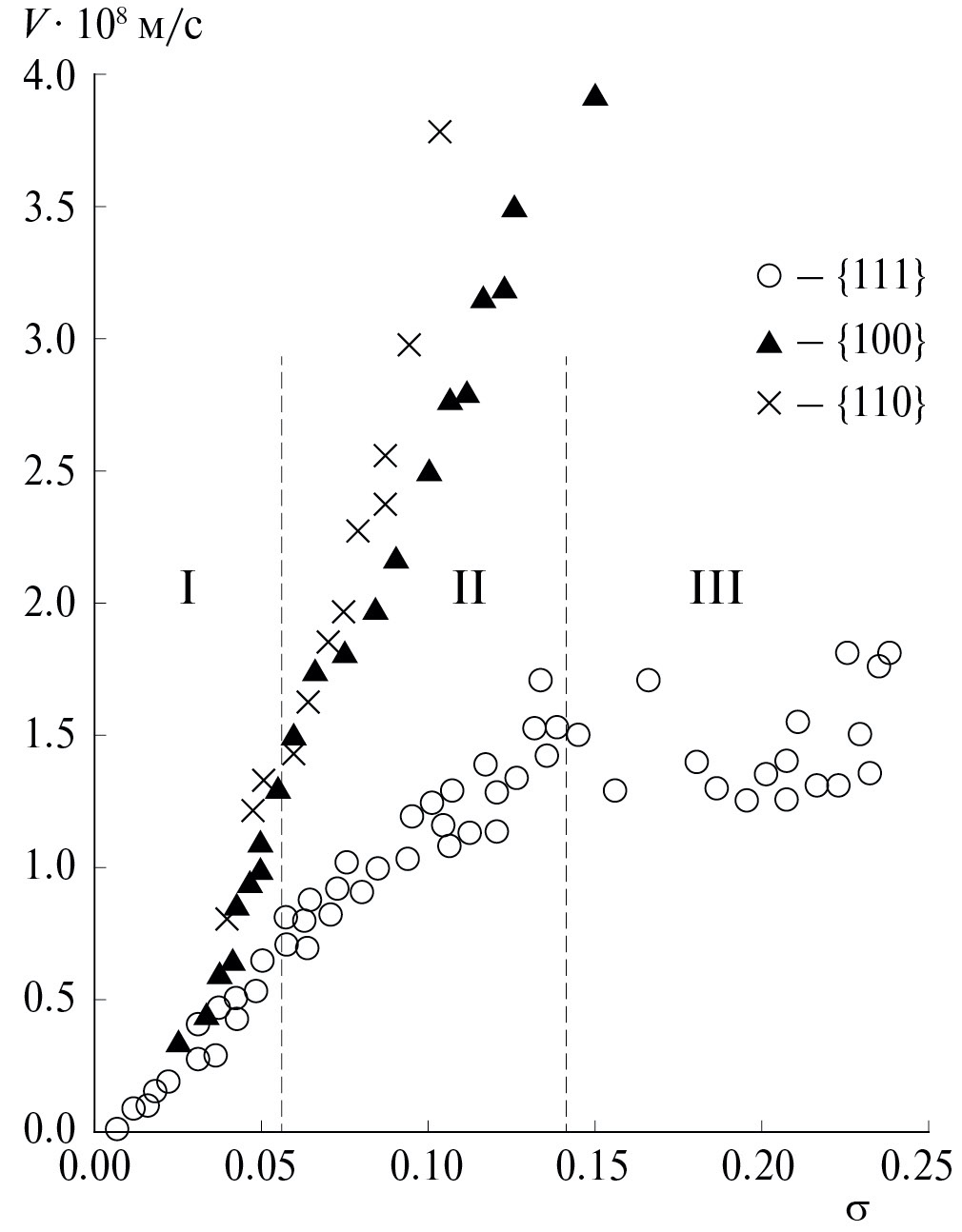 При переходе в область III (рис. 1) коэффициент KII увеличивается весьма значительно, поскольку под параметром h0 здесь следует понимать не вектор Бюргерса, а среднюю высоту макроступени на данном макроскопическом участке грани. Тогда последнее уравнение преобразуется к виду