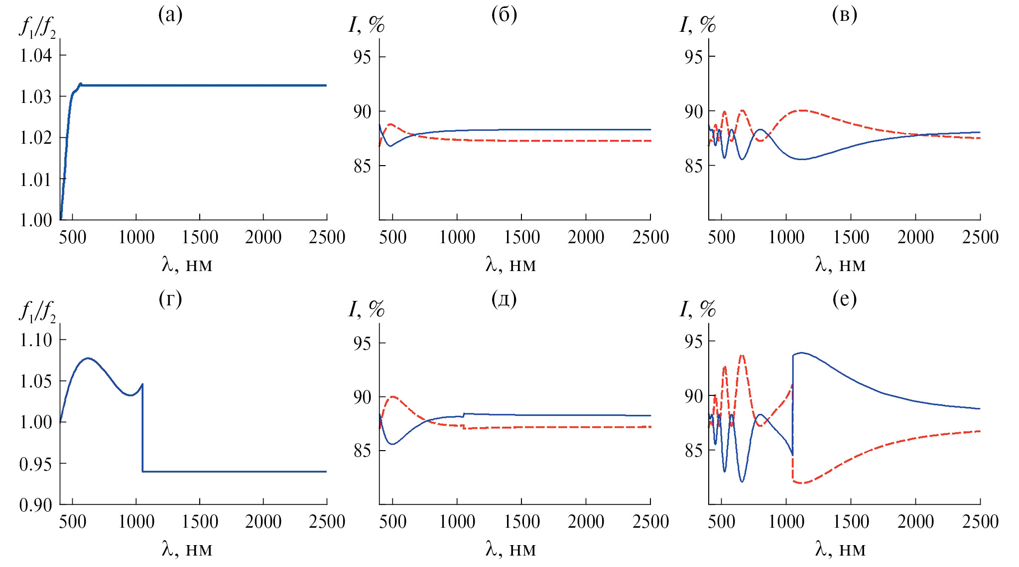 f1/f2 = –1.07 × 104 – 1.63 × 108/λ2 + + 2.05 × 106/λ + 29.71 λ – 0.046 λ2 +