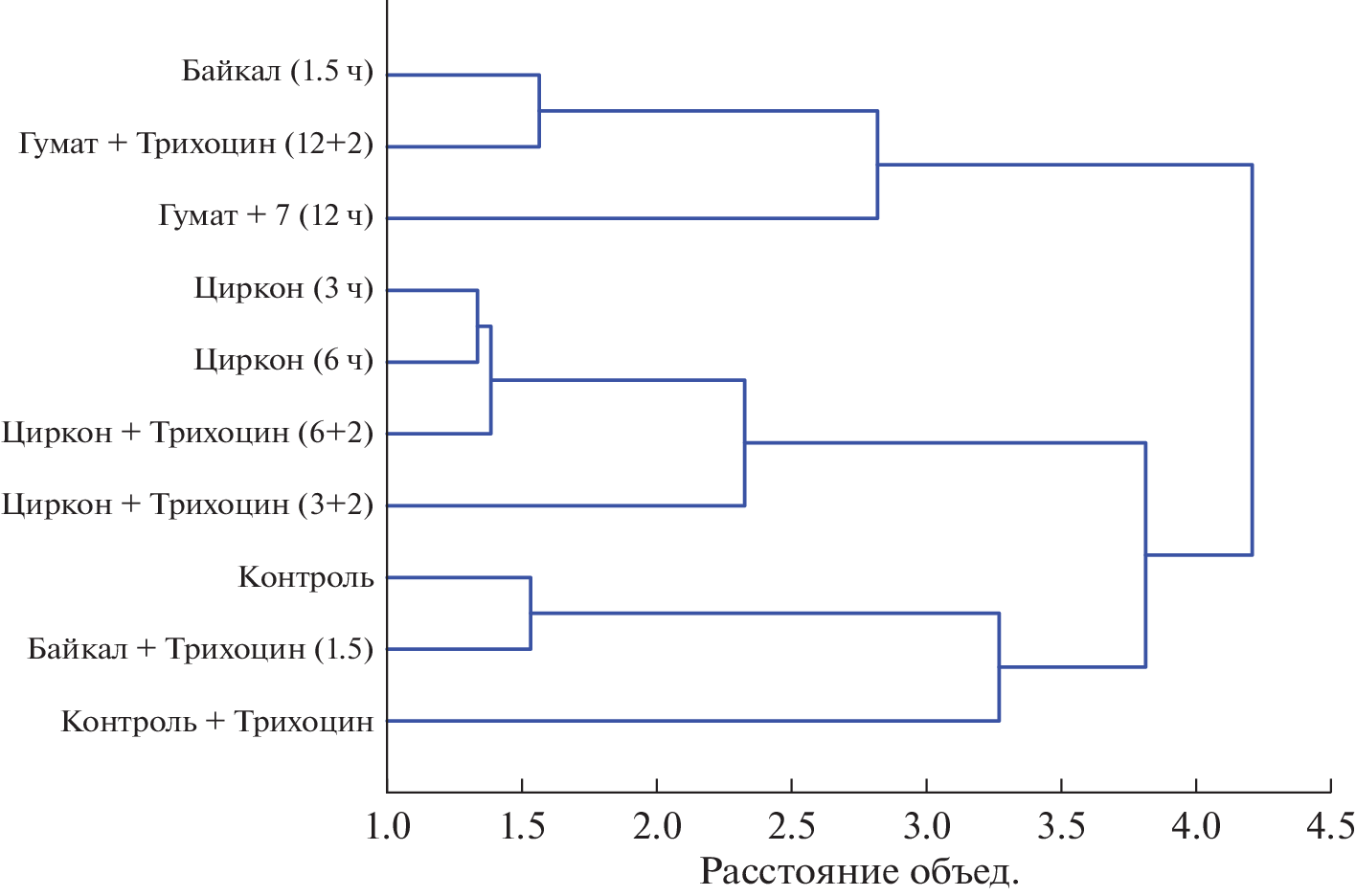 Для выращивания посадочного материала лесообразующих пород актуальным мероприятием является предпосевная обработка семян стимуляторами, положительно влияющая на всхожесть семян и рост сеянцев, причем для каждого региона страны ассортимент ростовых веществ различен. Цель исследований – выявление оптимального стимулятора и времени замачивания при предпосевной обработке семян сосны обыкновенной (Pinus sylvestris L.). Объектами исследований являлись одно- и двулетние сеянцы в лесном питомнике Шалдайского филиала Государственного лесного природного парка “Ертiс орманы” в Павлодарской области. Испытывались три стимулятора (Байкал, Циркон, Гумат + 7 микроэлементов) и фунгицид Трихоцин. Изучалась грунтовая всхожесть семян, число растений на единице площади и высота сеянцев. В опыте с совместным применением стимуляторов и фунгицида Трихоцин средняя высота однолетних сеянцев была ниже, чем у контрольных сеянцев. Но в двухлетнем возрасте средняя высота сеянцев в двух опытах превышала высоту контрольных сеянцев на 20.8 и 1.4%. Доказано пролонгированное действие предпосевной обработки семян стимуляторами и Трихоцином на усиление роста и числа сохранившихся сеянцев на единице площади в двухлетнем возрасте сеянцев. Результаты кластерного и рангового анализов доказали, что для предпосевной обработки семян сосны обыкновенной в условиях ленточных боров Прииртышья оптимальным способом является замачивание семян в средстве Гумат + 7 микроэлементов в течение 12 часов и совместно с Трихоцином (12 + 2 ч) в концентрации 1.5 г стимулятора и 0.6 г фунгицида на 1 литр воды.