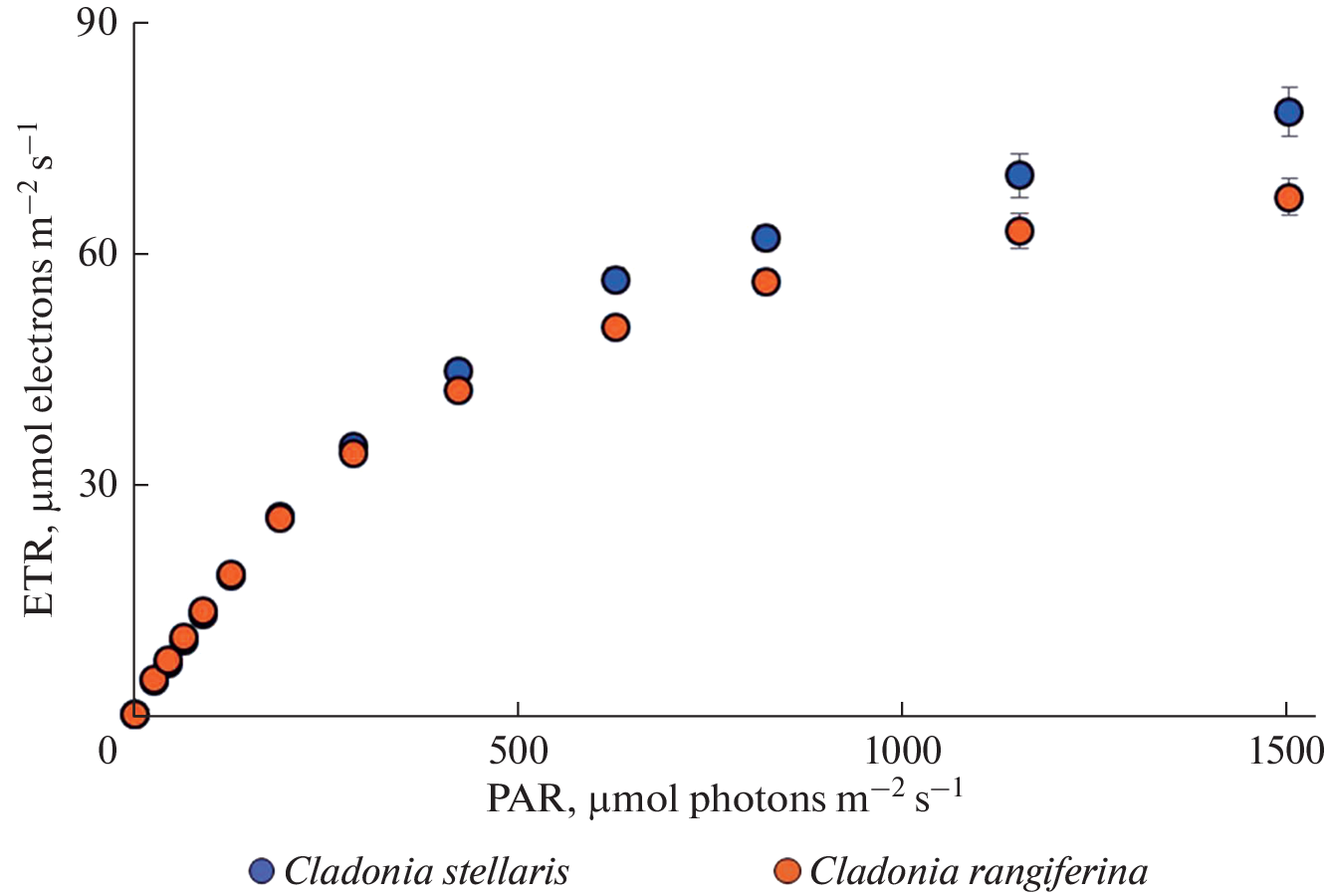 - Moser T.J., Nash T.H., Link S. Diurnal gross photosynthetic patterns and potential seasonal CO2 assimilation in Cladonia stellaris and Cladonia rangiferina // Canadian J. Botany. 1983. V. 61(3). P. 642–55.