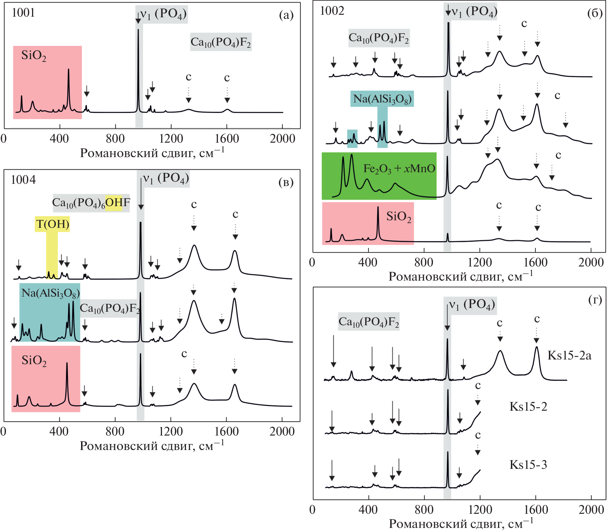 - O’shea D.C., Bartlett M.L., Young R.A. Compositional ana-lysis of apatites with laser-Raman spectroscopy: (OH, F, Cl) apatites // Arch. Oral. Biol. 1974. V. 19. № 11. P. 995–1006.