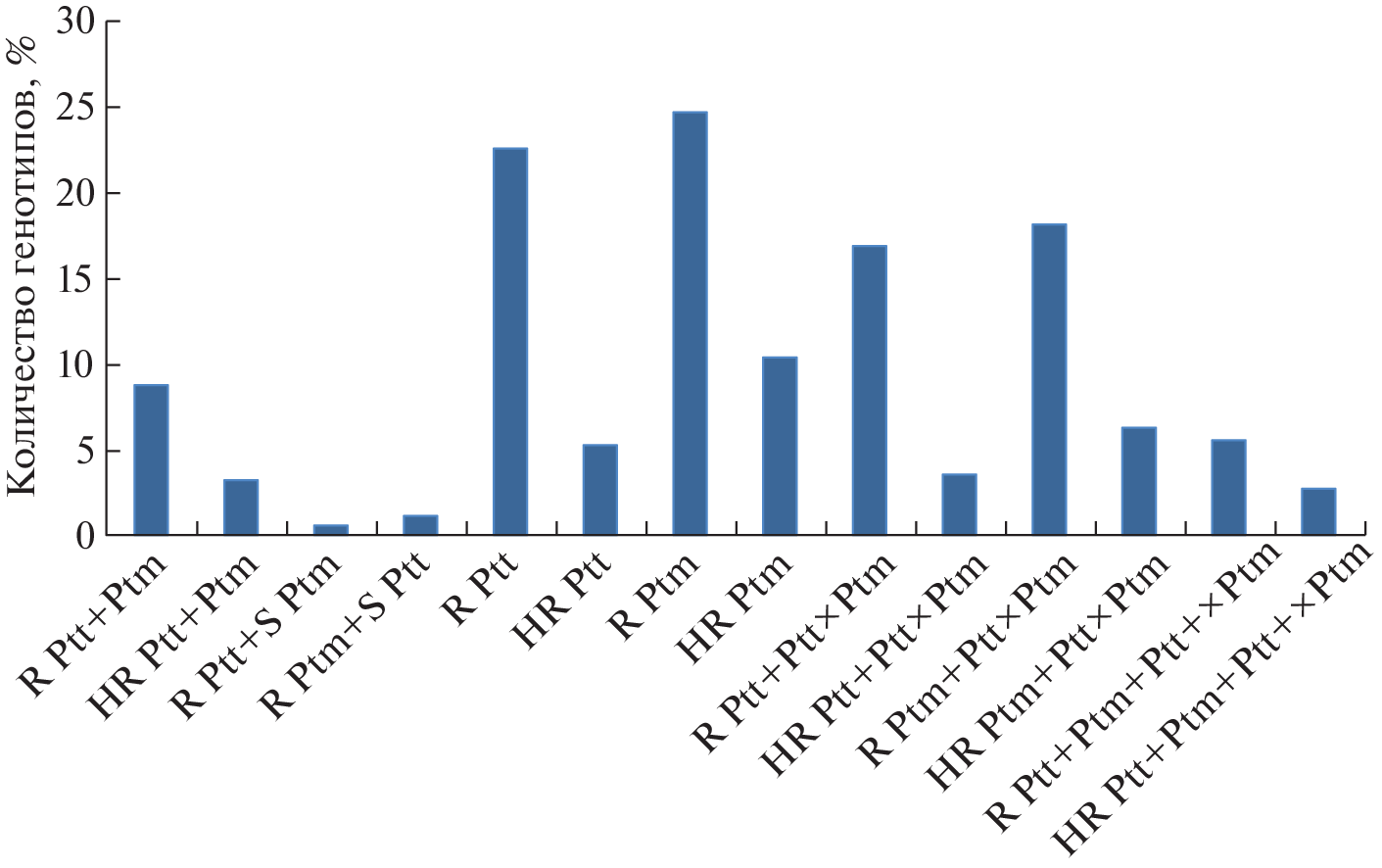 Сетчатая пятнистость – экономически важная болезнь ячменя. Возбудителем является аскомицет Pyrenophora teres, который существует в двух формах – f. teres (Ptt) и f. maculata (Ptm), отличающихся по симптомам на растениях ячменя. Эти две формы легко скрещиваются в лабораторных условиях с образованием фертильного потомства, однако доказать гибридную природу изолятов гриба, иногда встречающихся в природных популяциях возбудителя и несущих признаки обеих форм, крайне сложно. В 2020 г. нами впервые выявлены межвидовые гибриды Ptt × Ptm в природных популяциях P. teres Краснодарского края, собранных в 2016 г. Целью исследований являлось сравнительное изучение вирулентности двух изолятов Ptt, двух – Ptm различного происхождения и гибридного изолята Ptt × Ptm к широкому набору генотипов ячменя из коллекции ВИР, предварительно отобранных по устойчивости к Ptt, для определения изменчивости признака вирулентности у гибридного изолята и характеристики устойчивости к обеим формам гриба и гибриду. В зависимости от генотипа ячменя проявлялись 3 типа симптомов болезни при инокуляции гибридным изолятом Ptt × Ptm: 1) характерных для Ptt, 2) характерных для Ptm и 3) смешанного типа. По-видимому, проявление симптомов после инокуляции гибридным изолятом зависит от генотипа ячменя, влияющего на экспрессию определенных генов эффекторов патогена. Показано, что в большинстве случаев изоляты Ptm отличаются по вирулентности от изолятов Ptt к одним и тем же образцам ячменя, а гибридный изолят Ptt × Ptm как от Ptt, так и от Ptm. В среднем гибридный изолят Ptt × Ptm был менее агрессивным по сравнению с изолятами Ptt и Ptm. При сравнении типов реакций образцов ячменя ко всем изученным изолятам Ptt и Ptm выявлено 8.8% образцов устойчивых к обеим формам P. teres и 5.6% – к Ptt, Ptm и гибридному изоляту Ptt × Ptm. Изучение вирулентности природного гибрида Ptt × Ptm проведено впервые, выявленные устойчивые к двум формам возбудителя сетчатой пятнистости образцы ячменя являются ценным исходным материалом для селекции.